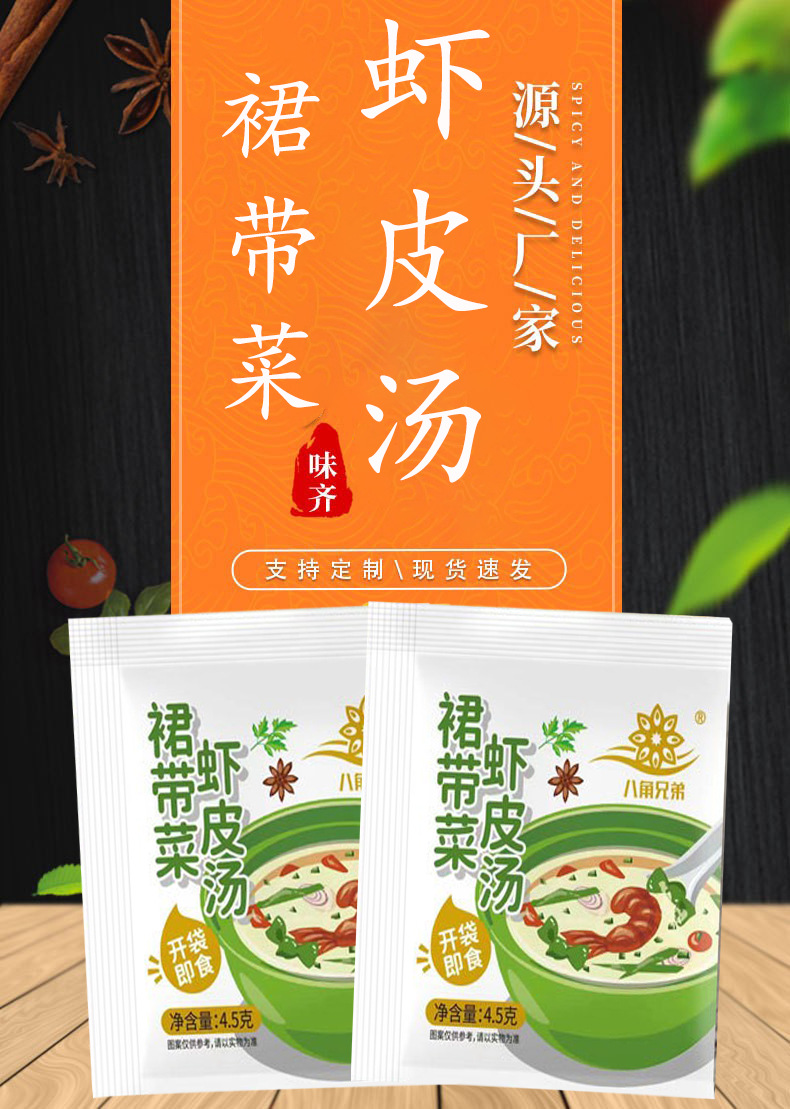 Суп из вакаме и сушеных креветок для домашнего использования, суп из морских водорослей с сушеными креветками, удобный завтрак, маленькая упаковка супа из вакаме и сушеных креветок