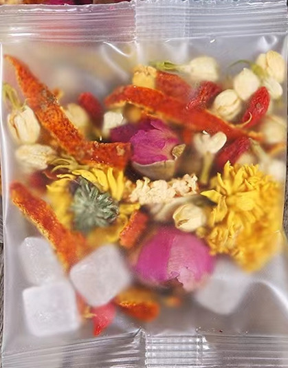 配料:山楂 枸杞 菊花 橘皮 决明子 栀子 金银花 大枣 冰糖