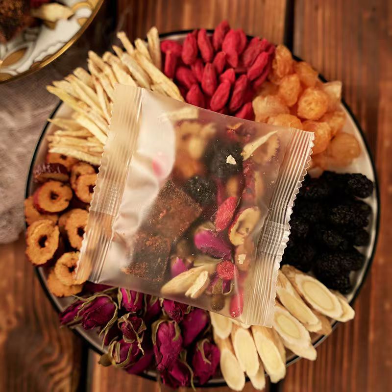 配料:蒲公英根 重瓣红玫瑰 玫瑰茄 无花果 茯苓 甘草