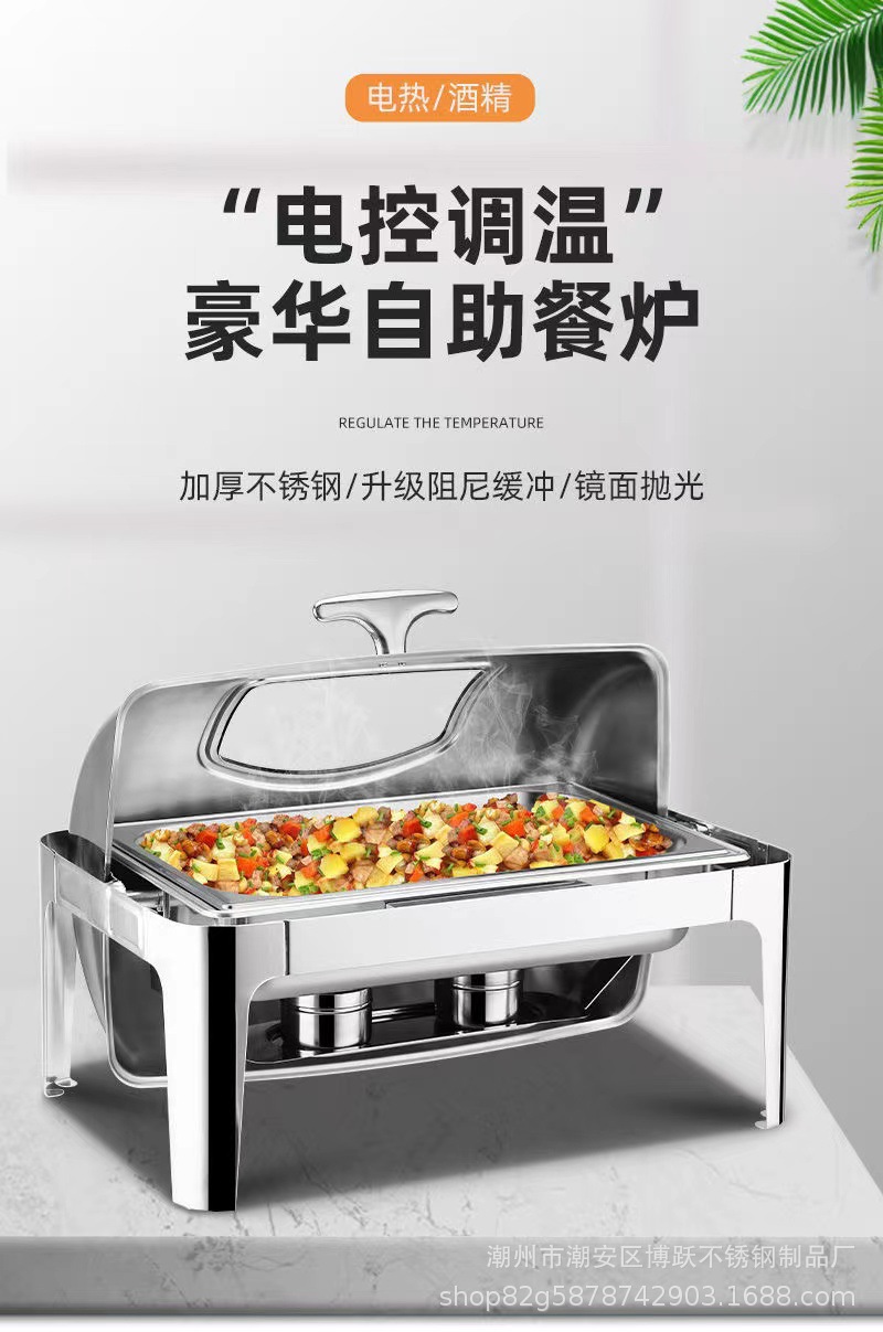 Люксовый буфетный котелок из нержавеющей стали, коммерческий электрический обогреватель, изоляционный котелок для завтраков, визуальный буфетный котелок