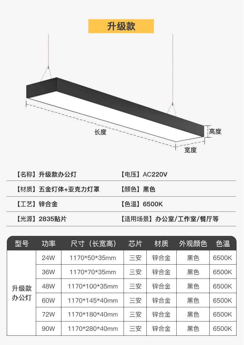 ![]() | Economy 1170*70*35/36W | Black Shell white light 6000K | ¥23.0 / ≈ 277 ₽ | 2985 | 5924233826512 | |