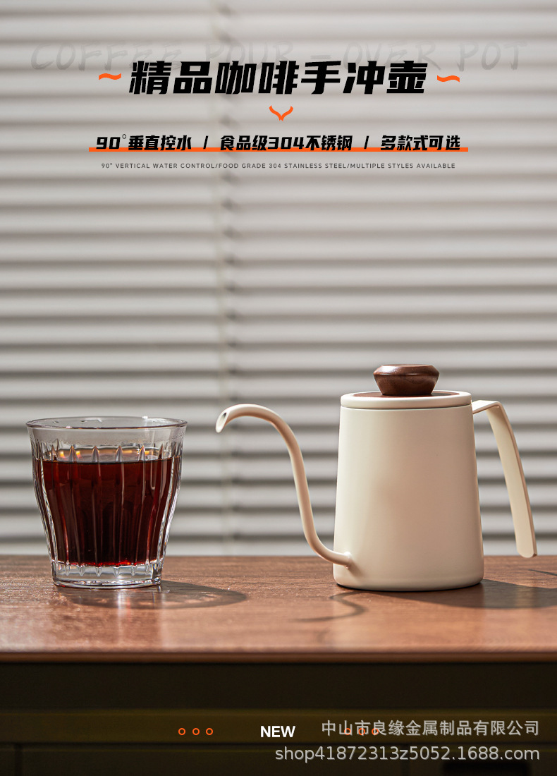 304 нержавеющая сталь кофейный ручной чайник, контроль потока воды, гусиношеечный носик, чайник с крышкой, висячий ухом, бутиковый кофейник