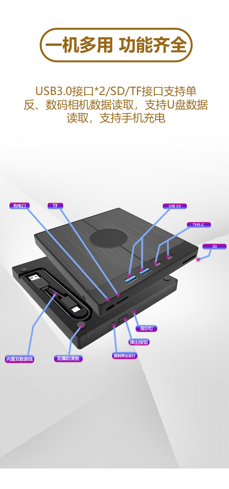 Расширенный USB3.0D внешний DVD горелка многоинтерфейсный TYPE-C мобильный CD диск воспроизведение привод