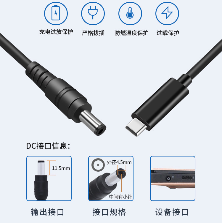 Кабель pd65w, тип C к DC4530, для быстрой зарядки, триггер 5525, переключающий кабель 4017