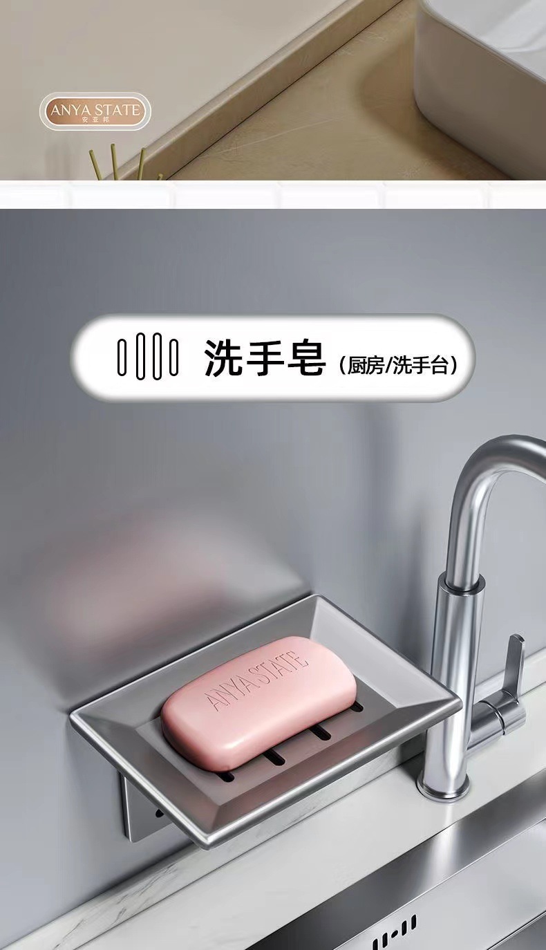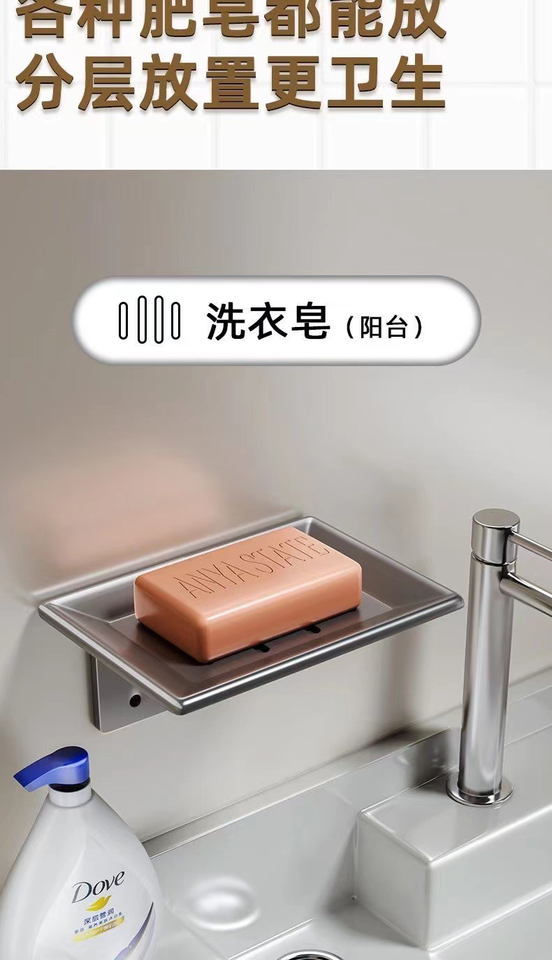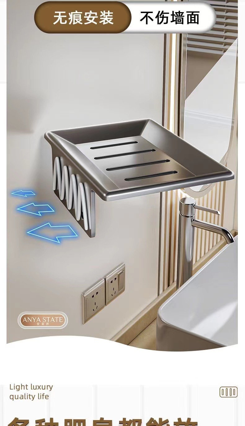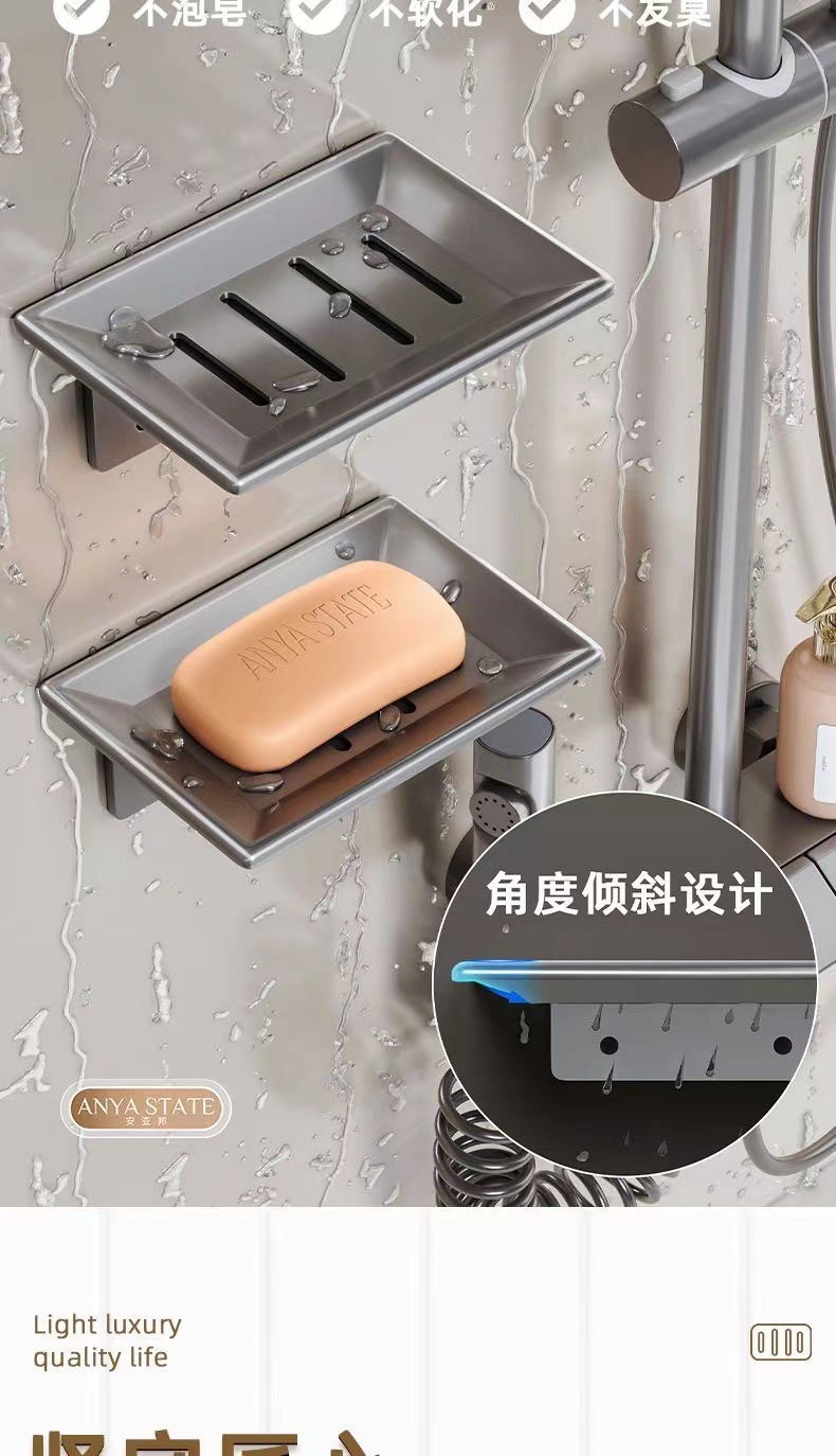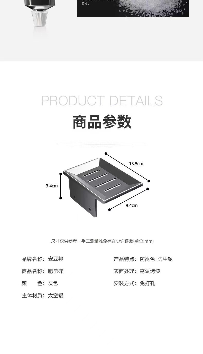 Серый контейнер для мыла для ванной, креативный, с дренажем, алюминиевый, без сверления, настенный