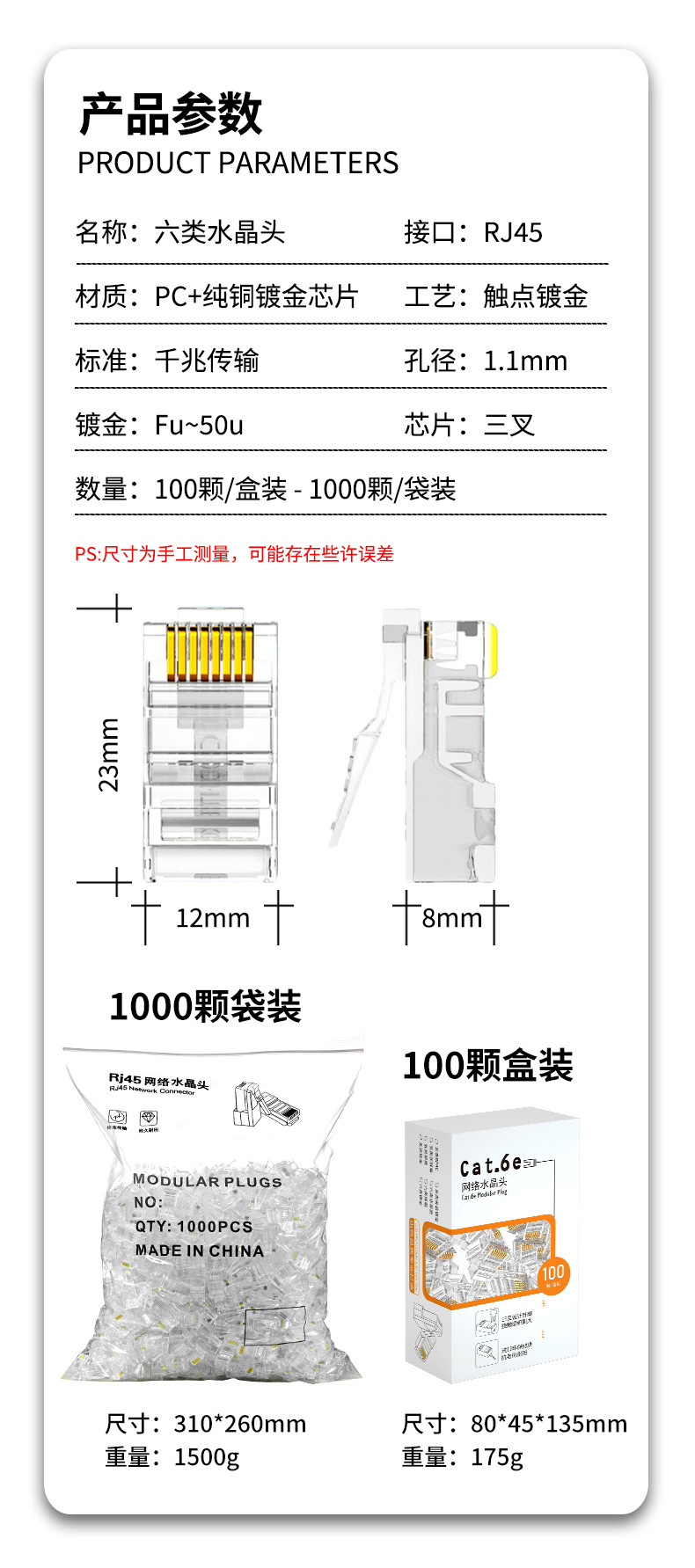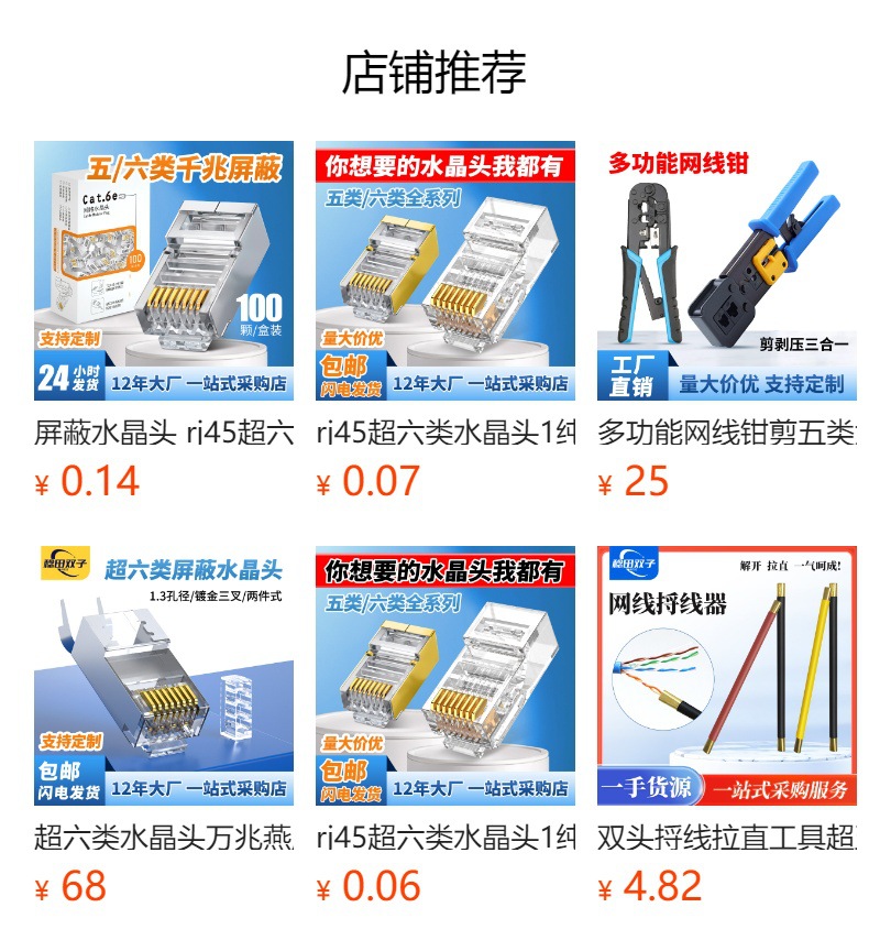 ![]() | 【50u】category six large three-prong 0.35 fully gold-plated chip | ¥0.45 / ≈ 5 ₽ | 848594 | 5627915009871 |