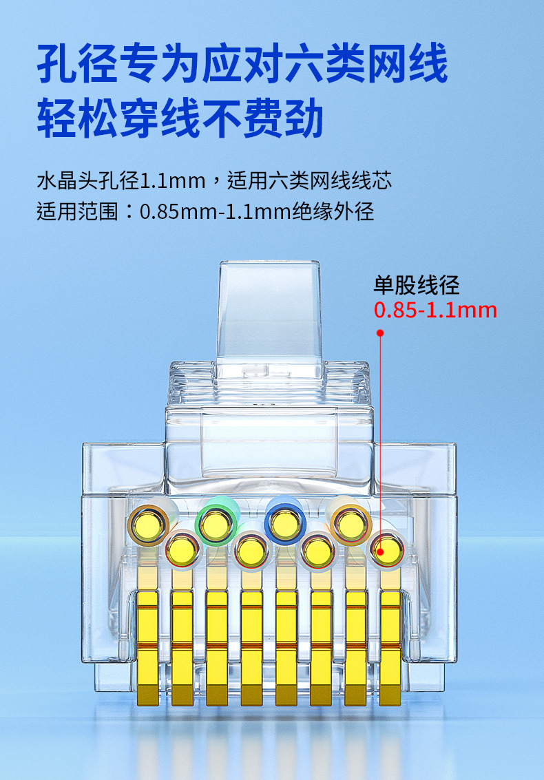 Кристаллическая головка категории 6E, Gigabit, золото, 3U50U, чистая медь