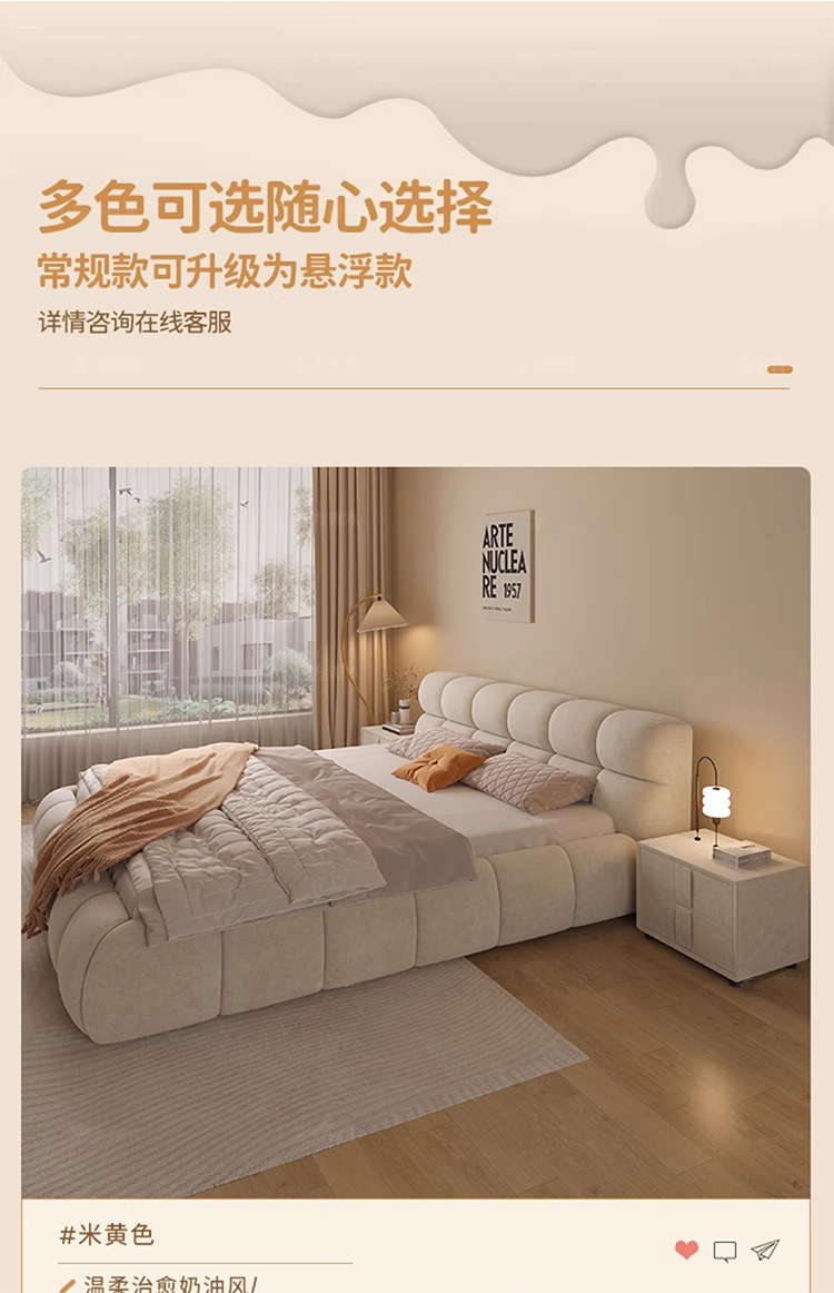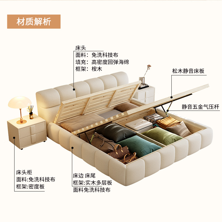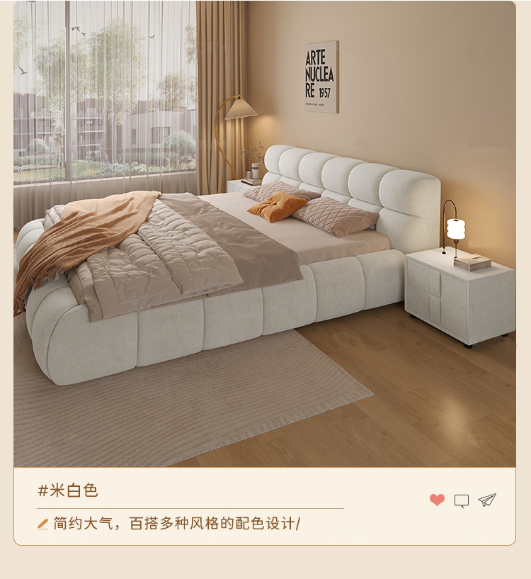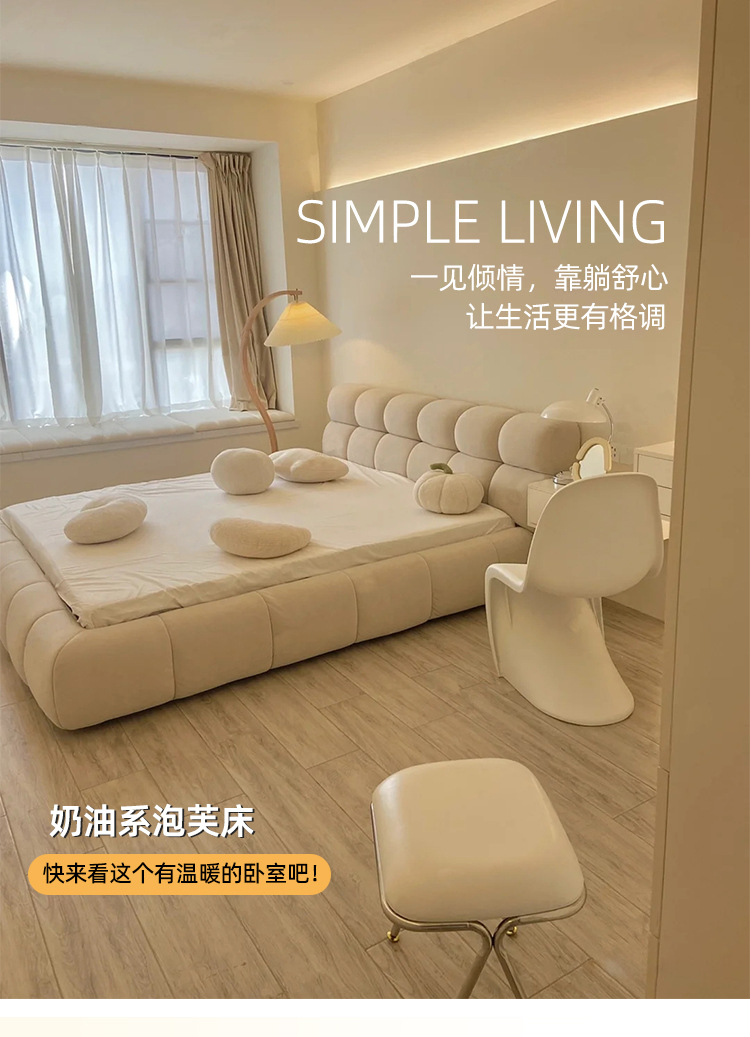Французская кремовая стильная пуховая кровать, доступная роскошная пузырьковая кровать, современная простая двуспальная кровать