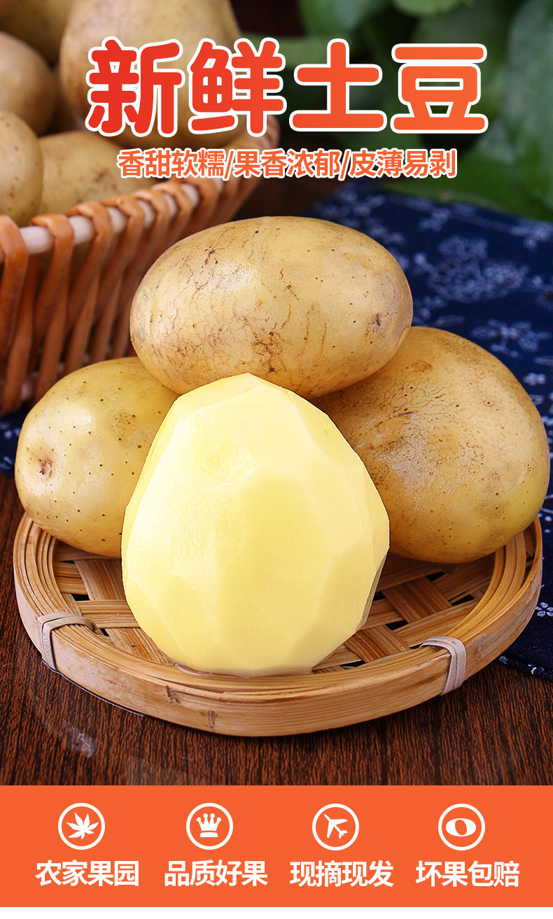 Картофель с желтой кожурой и желтой сердцевиной, целая коробка 5/ 5кг, мягкий, клейкий и сладкий, свежие овощи с фермы, только что выкопанные