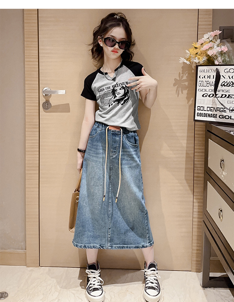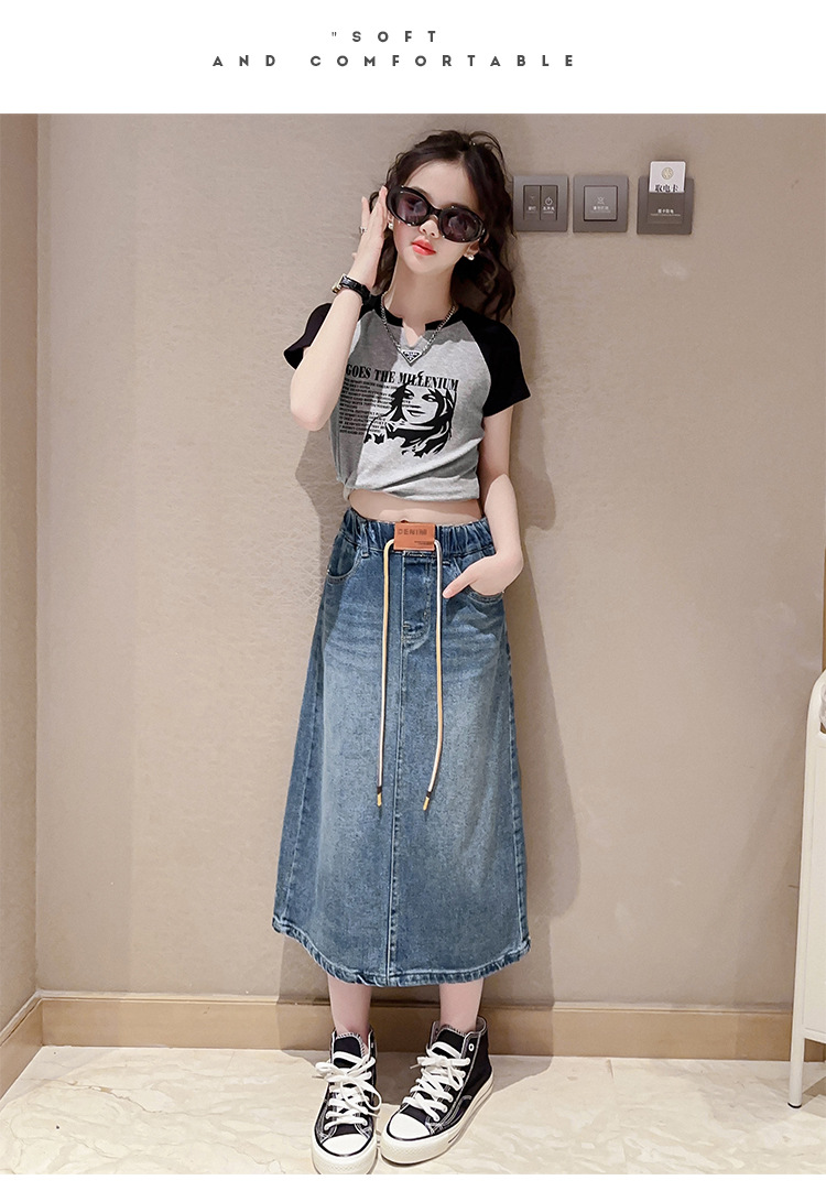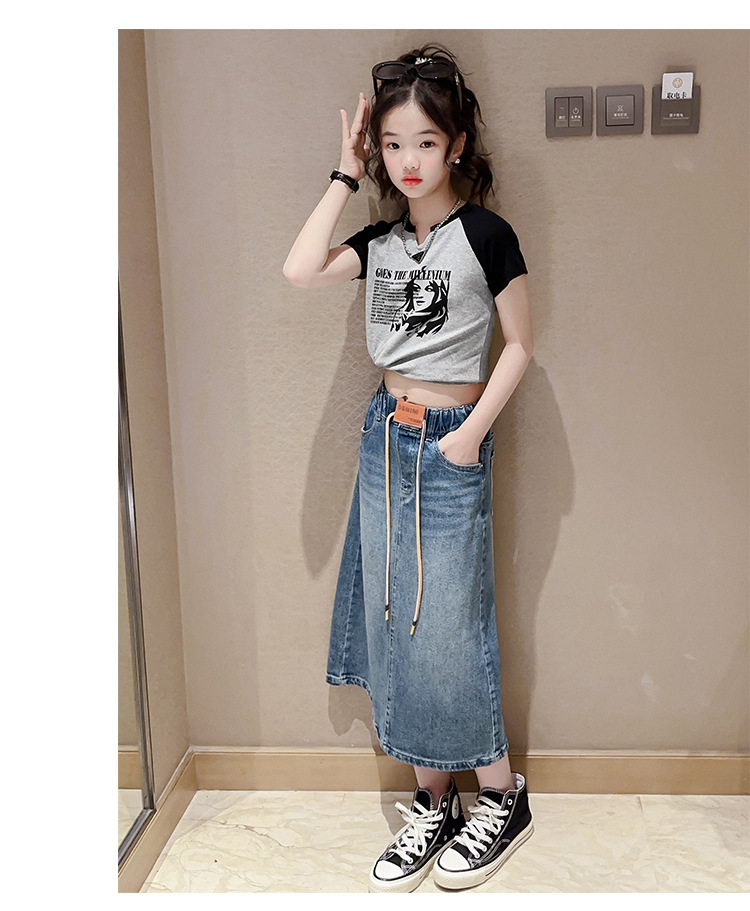 Оптовая джинсовая юбка для девочек, новое летнее корейское casual платье для старших девочек, средней длины