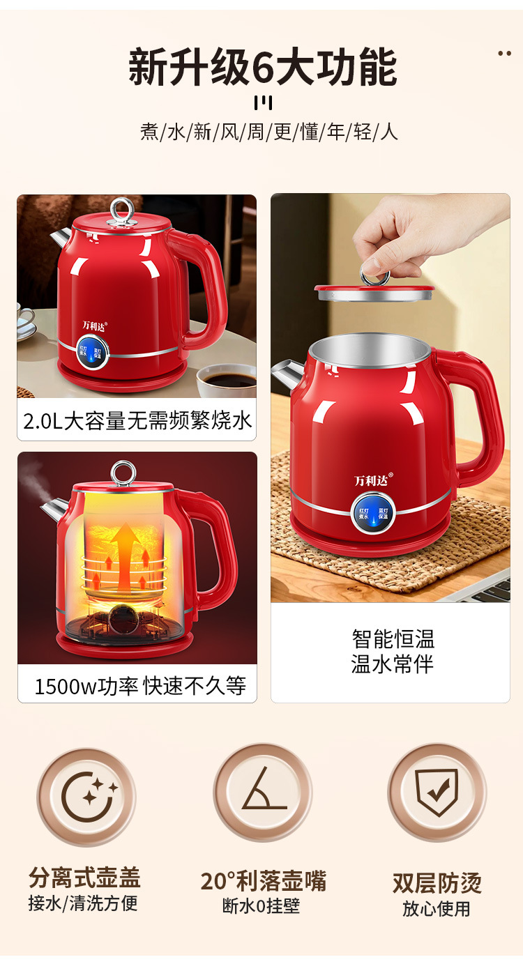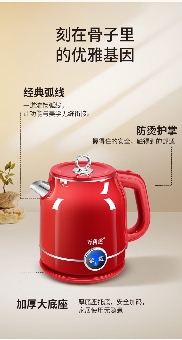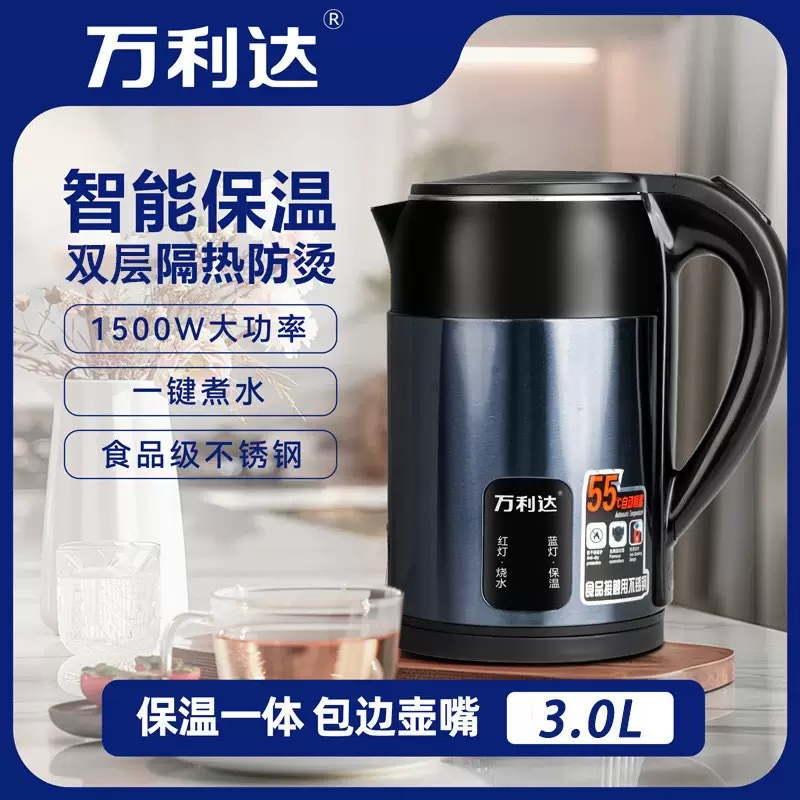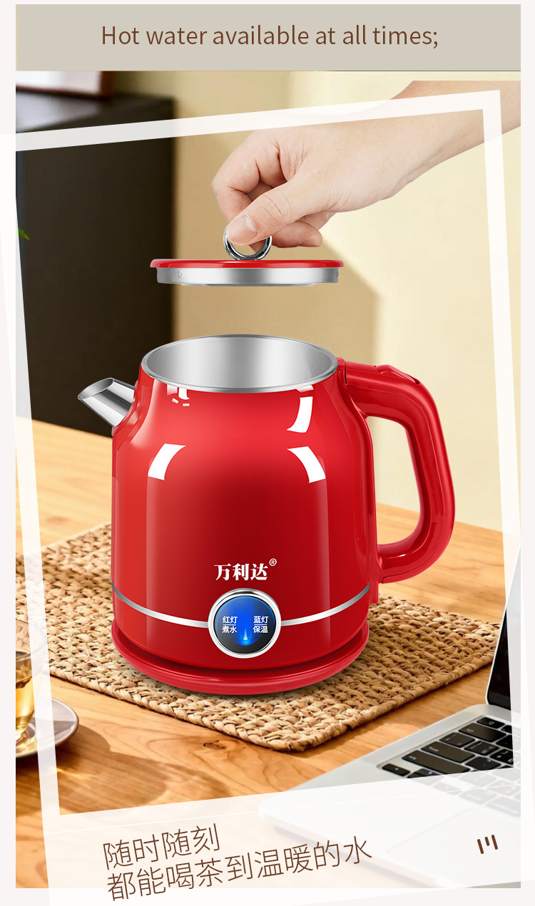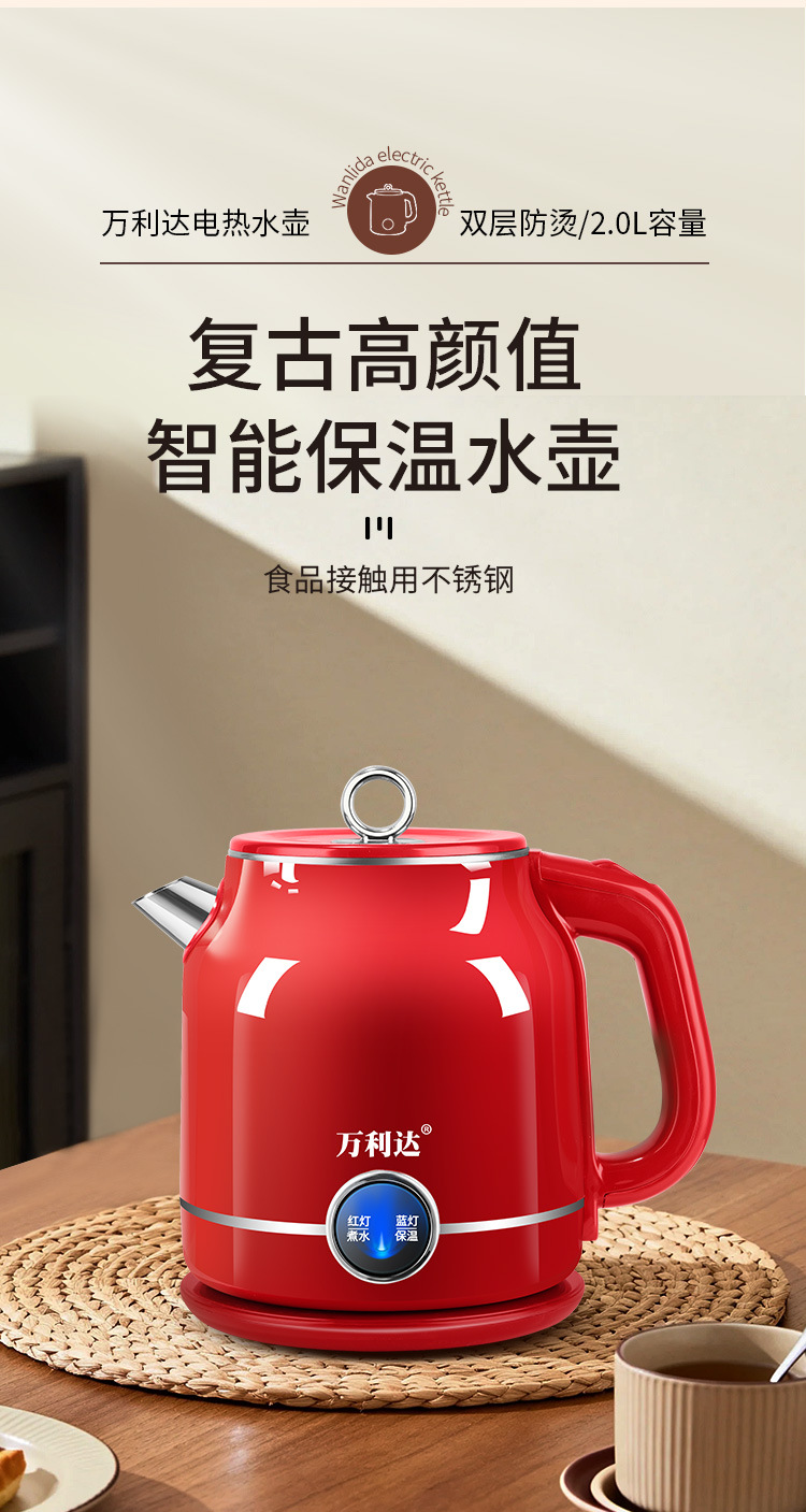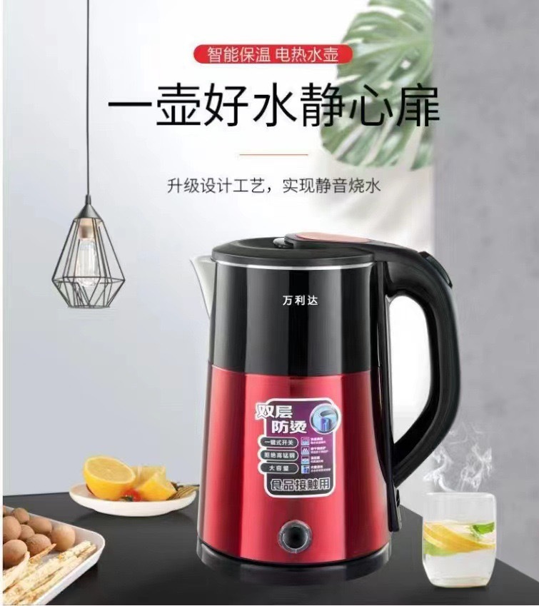 Популярный ретро электрический чайник для дома, портативный, постоянная температура, большая емкость, двухслойный, противоожоговый