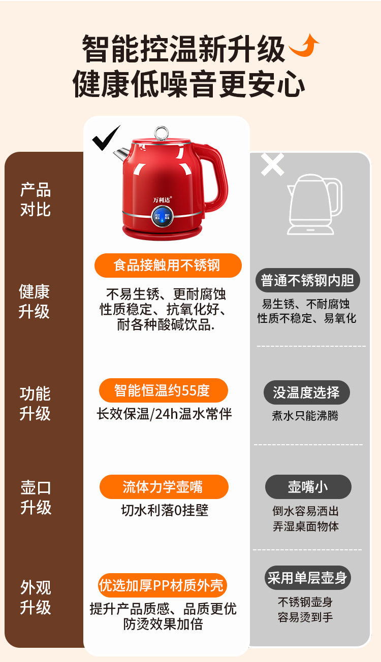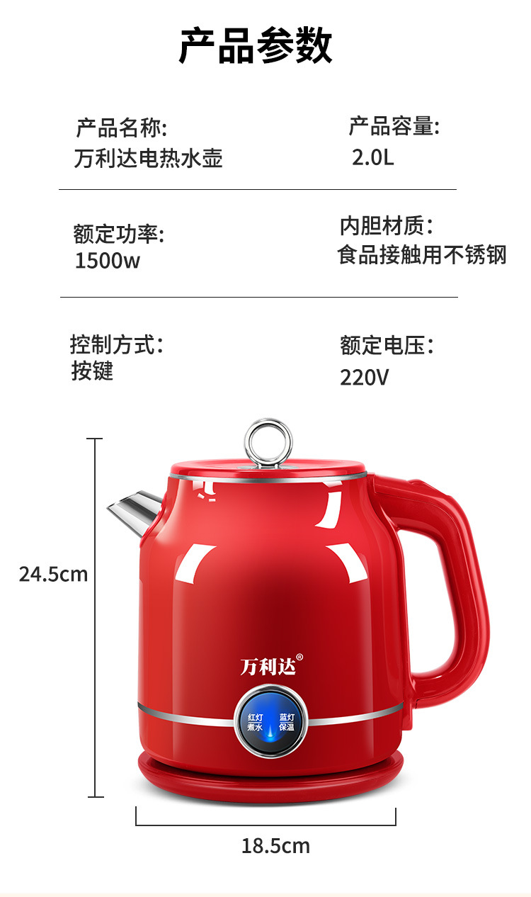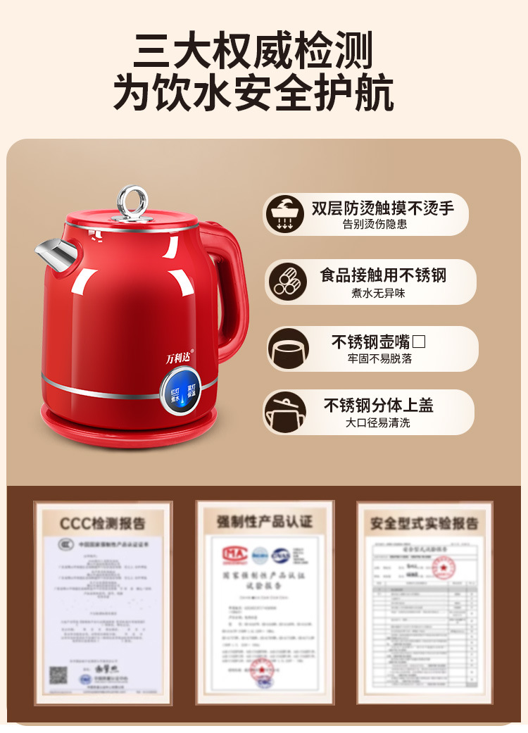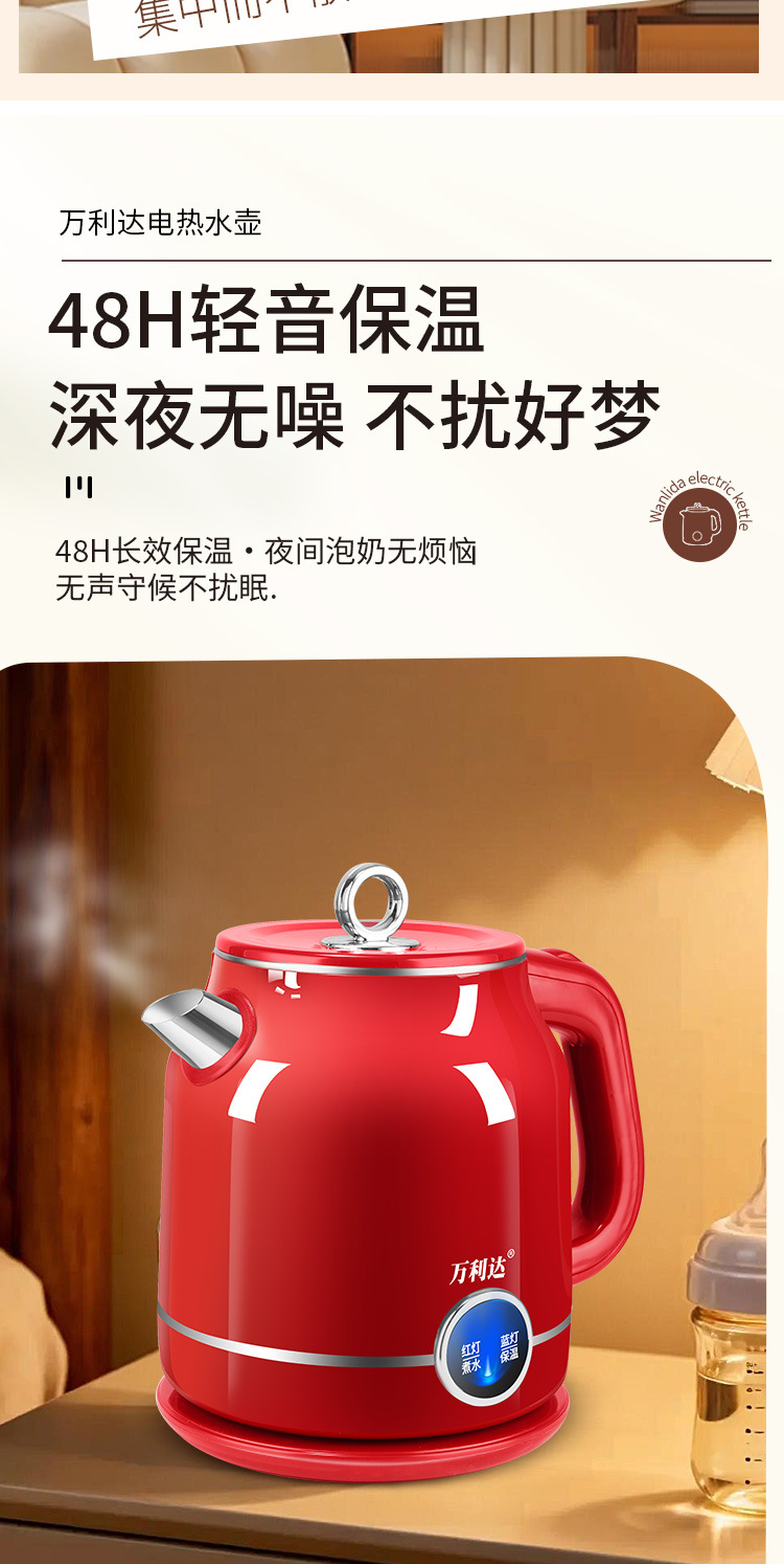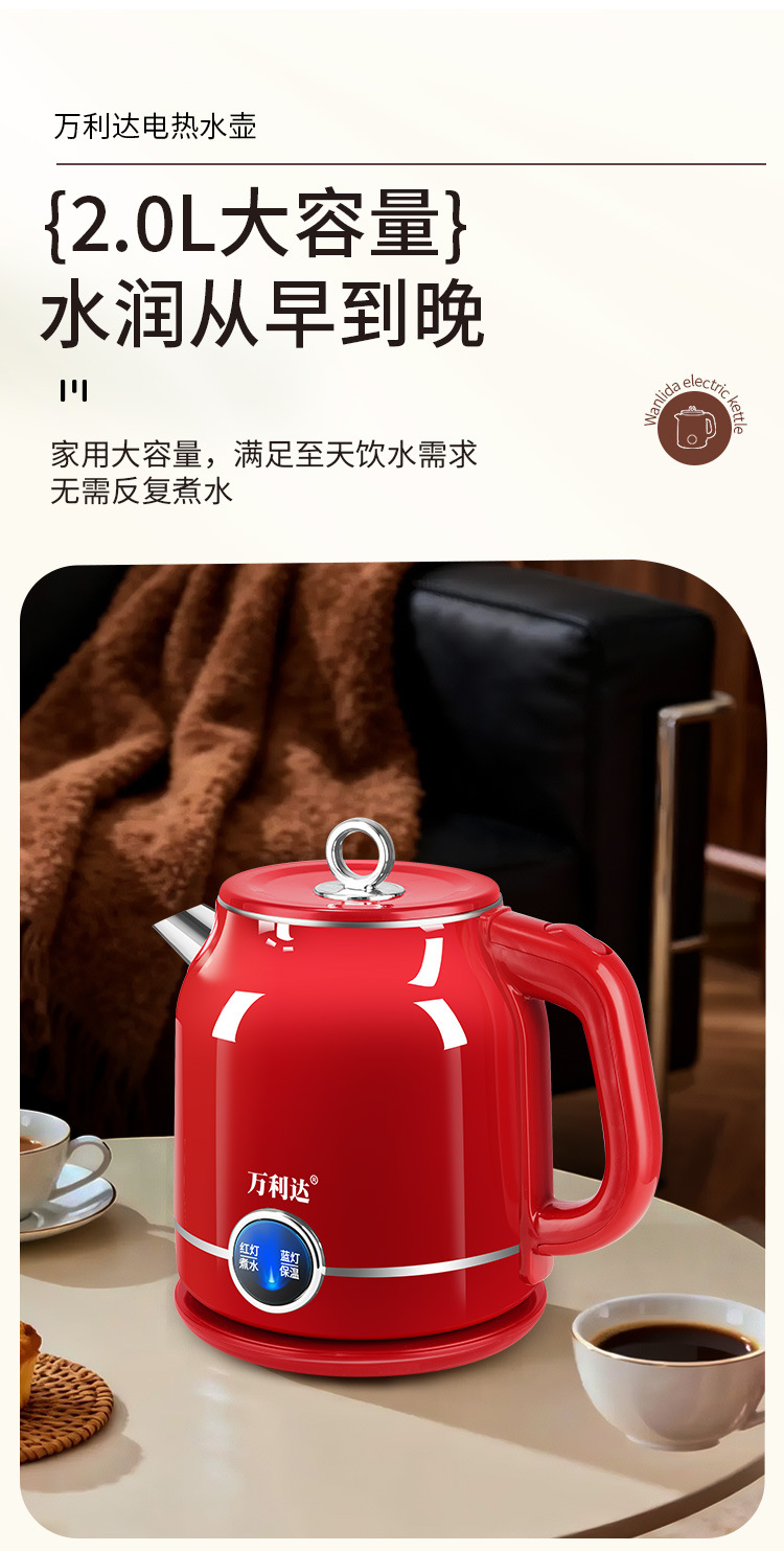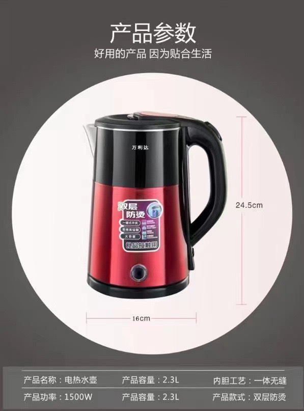 Популярный ретро электрический чайник для дома, портативный, постоянная температура, большая емкость, двухслойный, противоожоговый