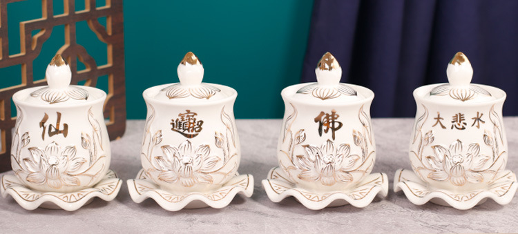 Оптовая керамическая чаша для священной воды Авалокитешвары, чаша для воды Будды, чаша для дома с лотосом