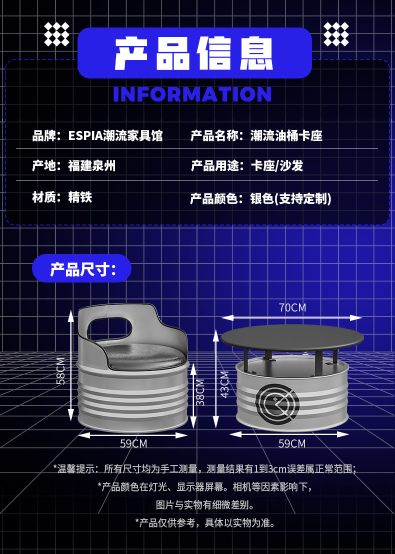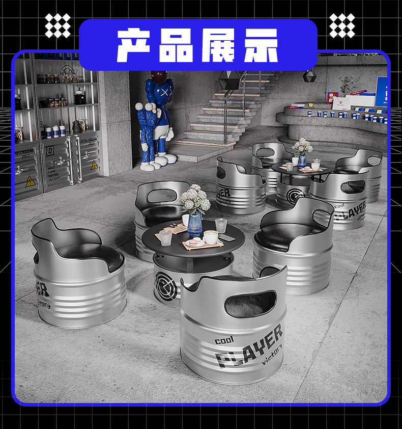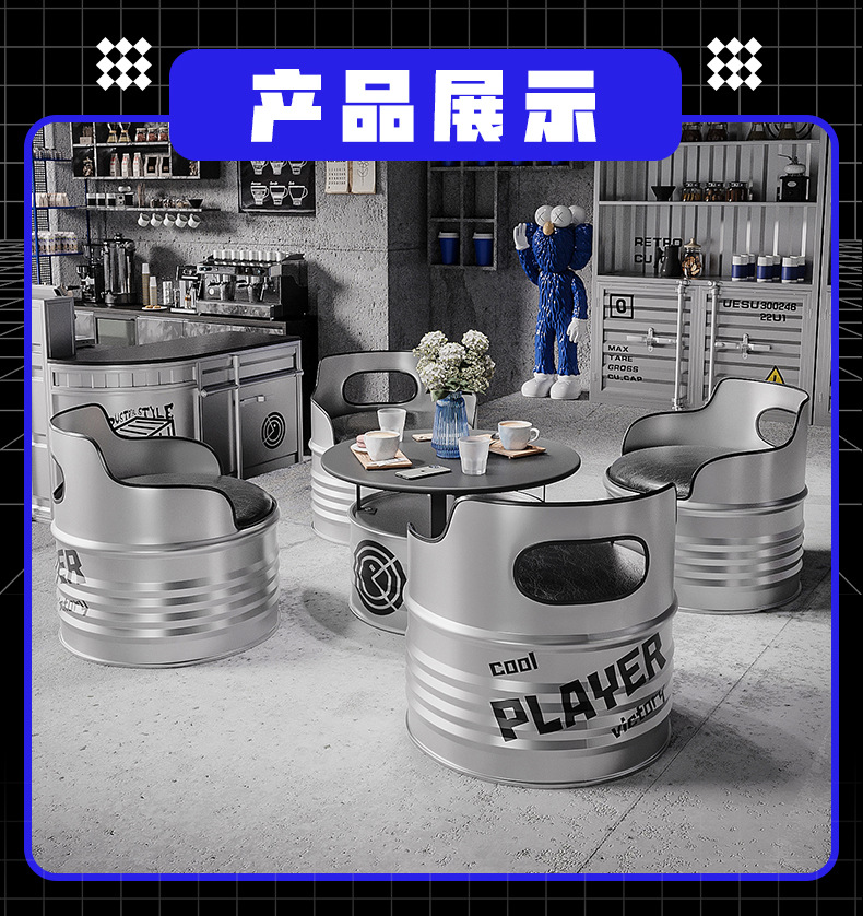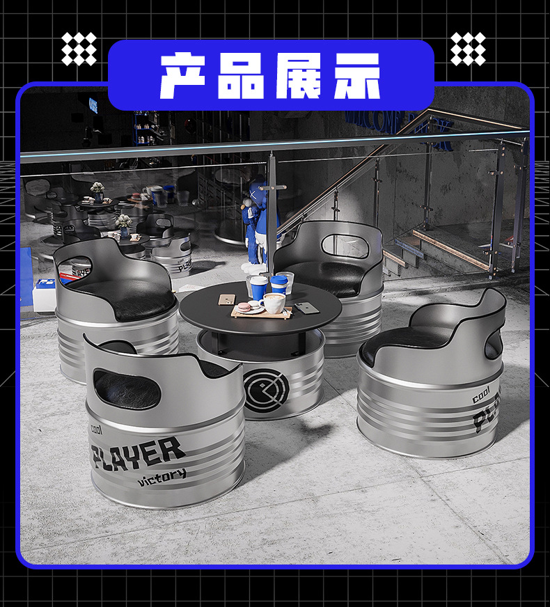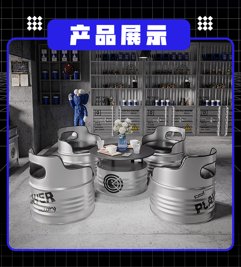 Диван из железных бочек в индустриальном стиле, креативный кофейный столик, ретро-комбинация стола и стульев для молочного чая