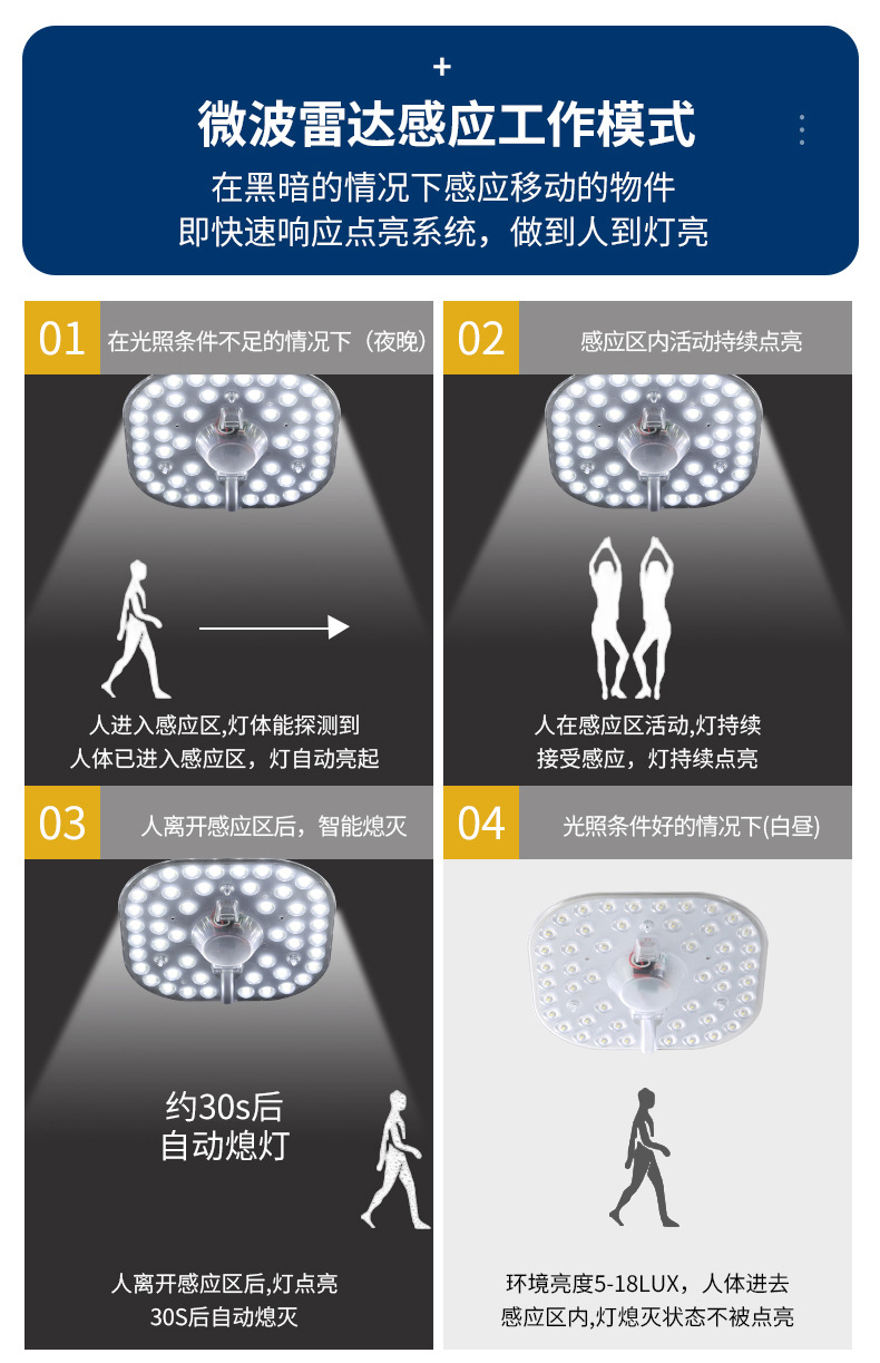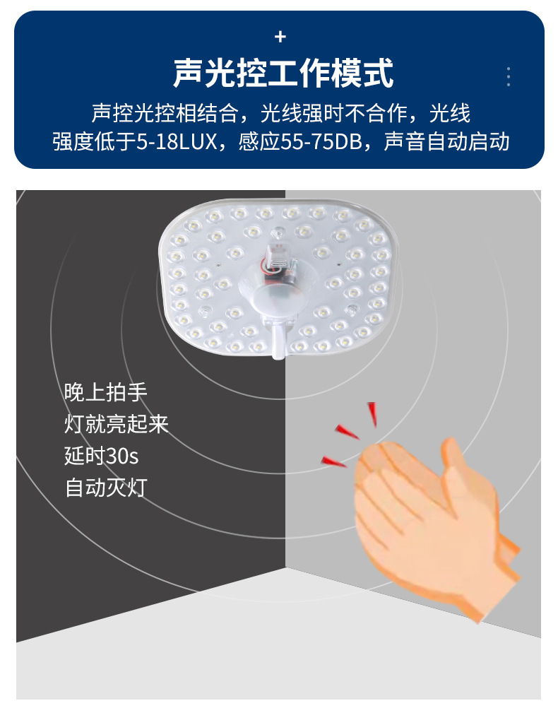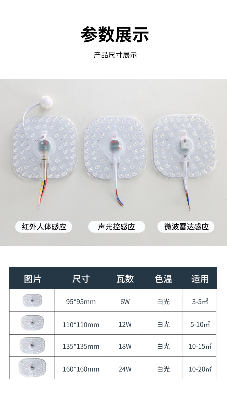 Светодиодный модуль управления светом и звуком, радар, индукция человеческого тела, источник света для коридора, панель света, звуковой контроль