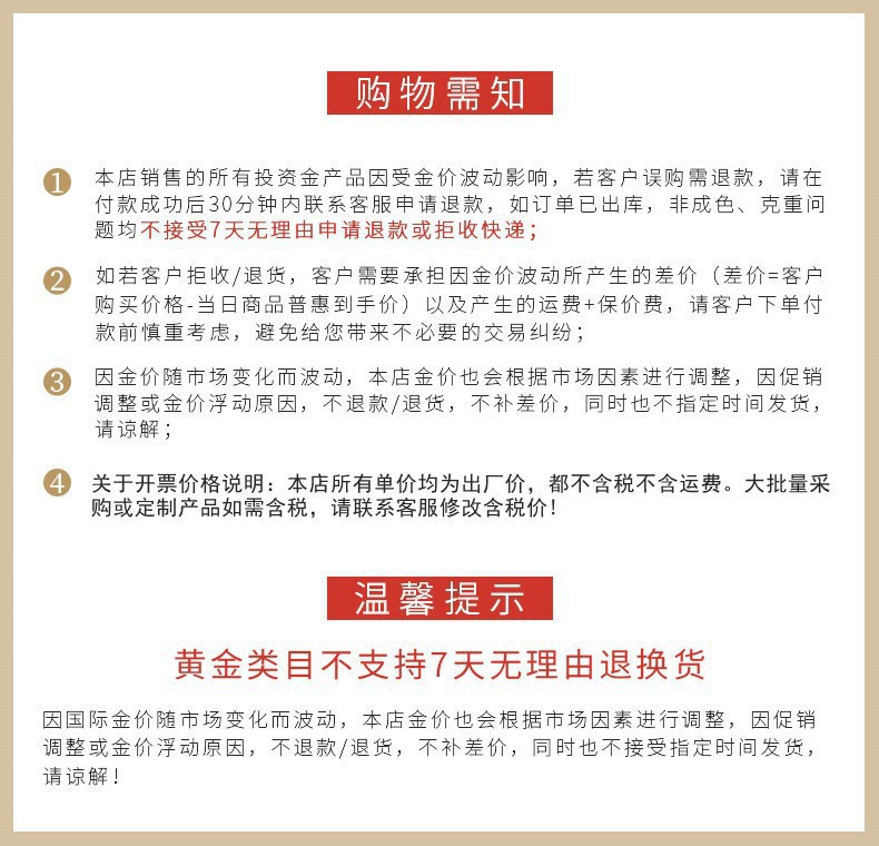 ![]() | Gold broken gourd pendant (about 0.3g) | Single pendant + titanium necklace + national inspection certificate + high-end jewelry packaging | ¥305.0 / ≈ 3 685 ₽ | 688 | 6032081906575 | |