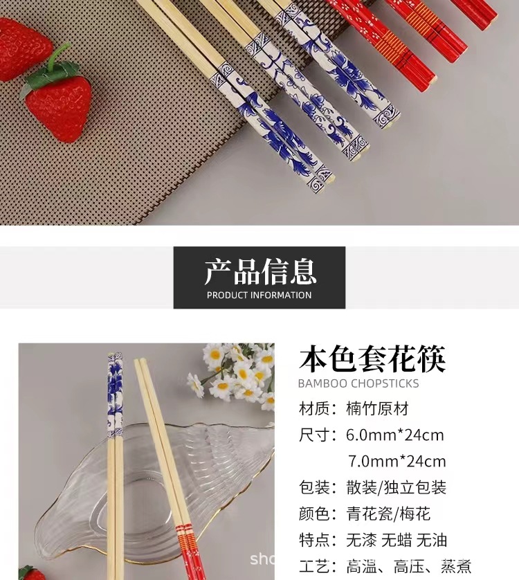 Одноразовые синие и белые фарфоровые палочки для свадьбы и домашнего использования, оптовая продажа от производителя, карбонизированные бамбуковые палочки оптом, бесплатная доставка за штуку