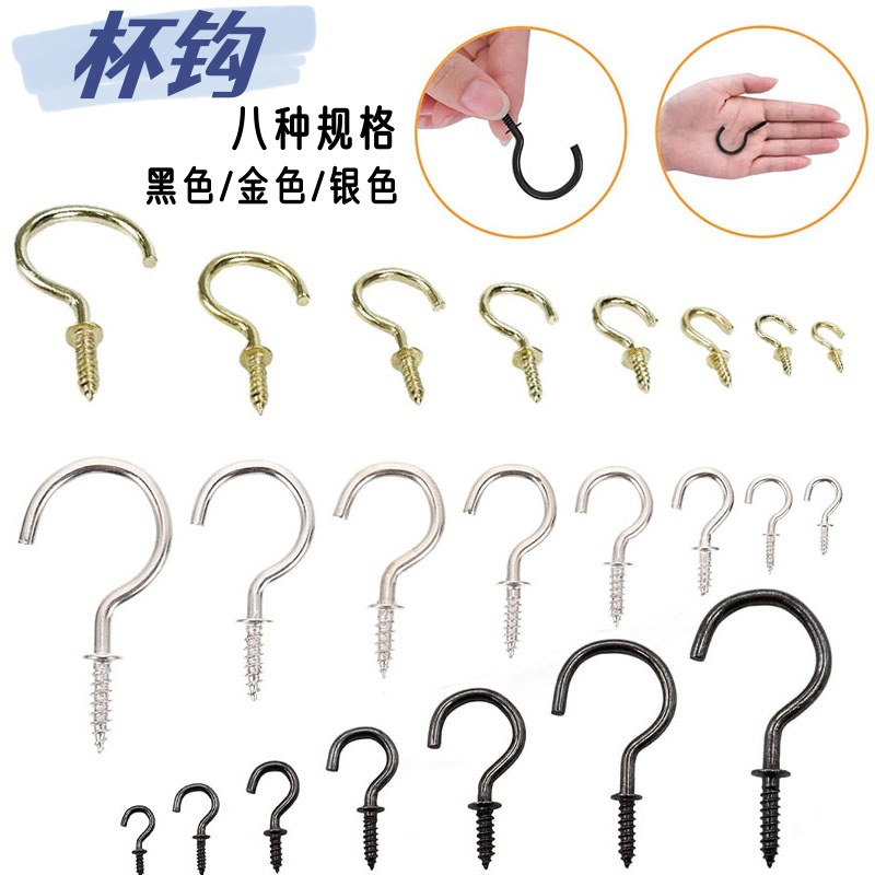 Заводская поставка, 8 размеров, черные, золотые, серебряные винтовые крючки для потолка, металлические крючки для стен