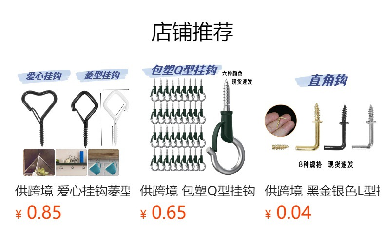 ![]() | 3.0/4inch cup hooks | Silver | ¥0.06 / ≈ 1 ₽ | 980929 | 5474726115457 | |