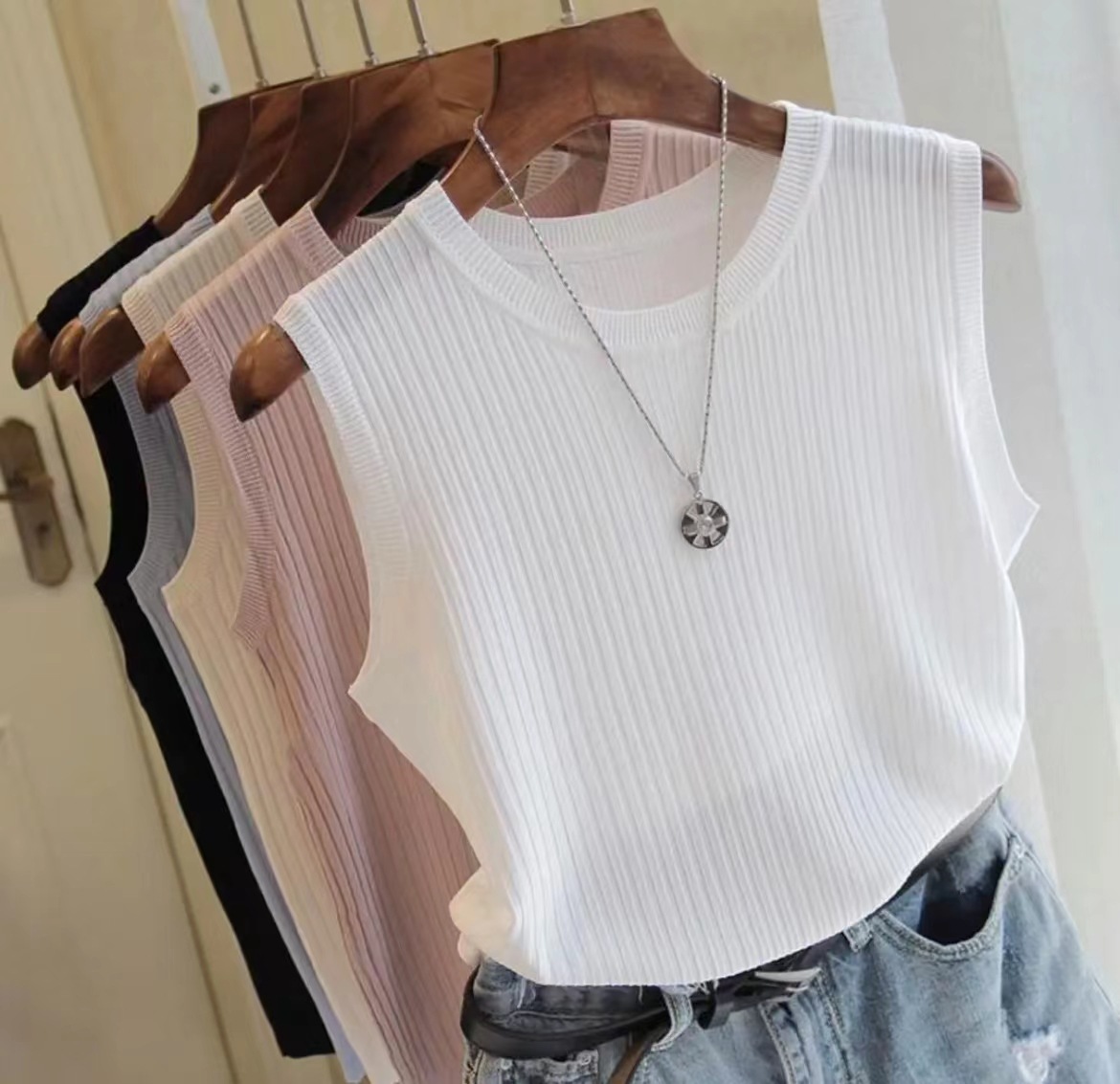 2024 весна и лето новая майка топ с круглым вырезом для ношения снаружи и внутри универсальная стройнящая тонкая
