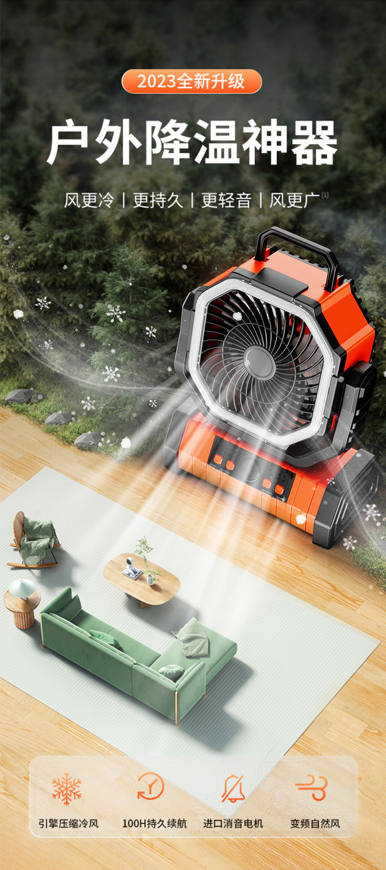 Кросс-бордерный вентилятор для кемпинга, уличный, длительный, многофункциональный, с дистанционным управлением, колеблющийся, портативный вентилятор для палатки с освещением