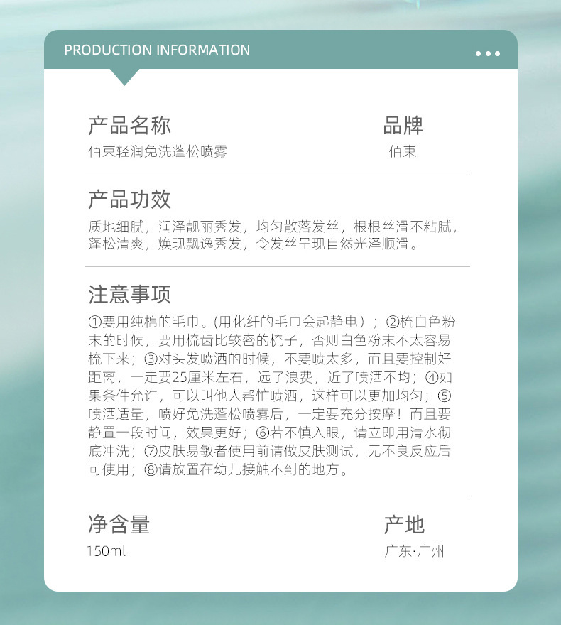 Название продукта Bai Beam Light Moisturizing No-Wash Fluffy Spray