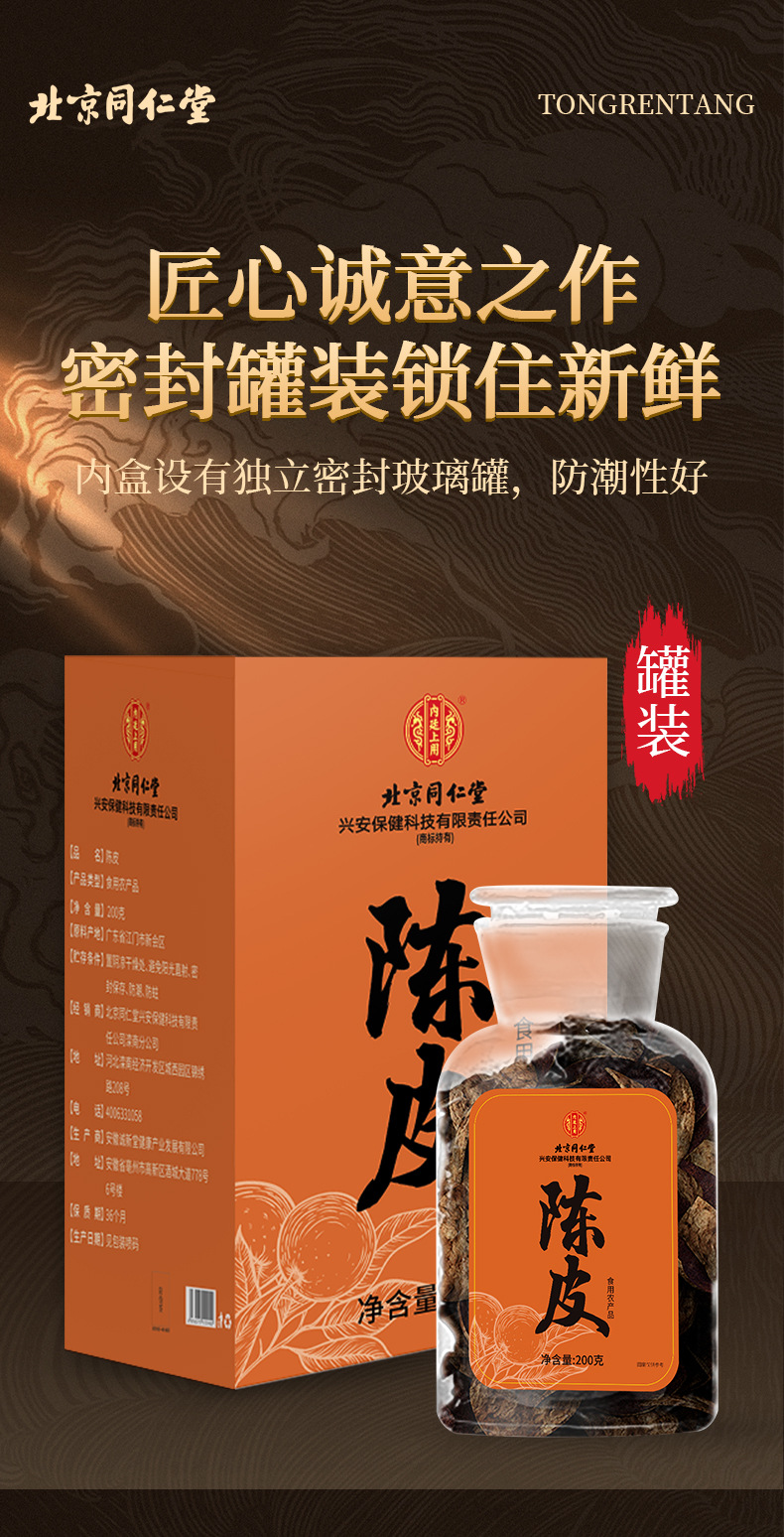 Мандариновая цедра из Пекин Тонгрентанг, 50 г, свежесобранная из Юннани