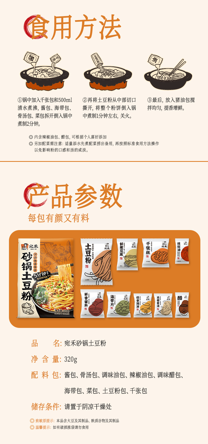 Ваньхэ земляной бобовый порошок кастрюля острый хот-пот пакетированный грубый рисовая лапша закуска удобная вермишель