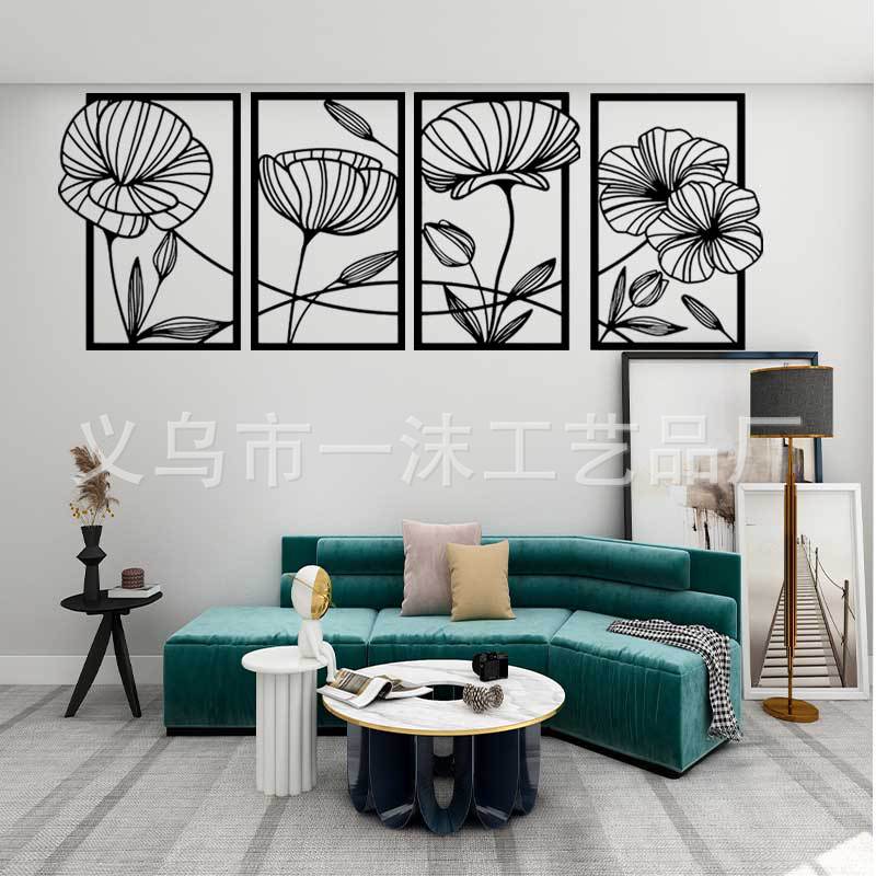 Новая настенная декорация из черного металла в виде лотоса и лотосовых листьев, 4 предмета, трехмерное оформление