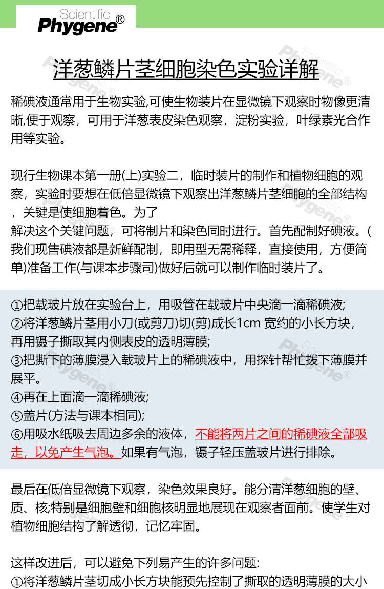 Раствор йода для окрашивания эпидермиса лука, эксперимент для учеников средней школы, тест на йод-крахмал, биологический эксперимент