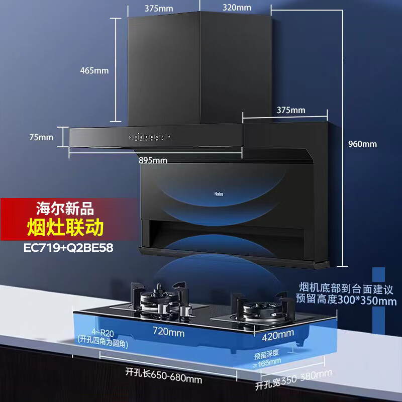 Комплект газовой плиты Haier с вытяжкой, связанный пакет, комбинация плиты, кухонный комплект, трехкомпонентный набор 719