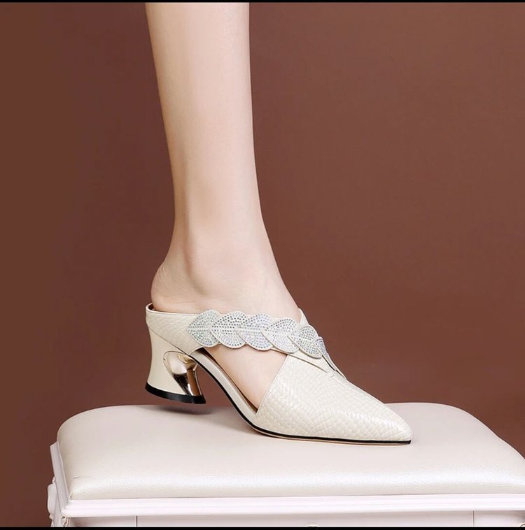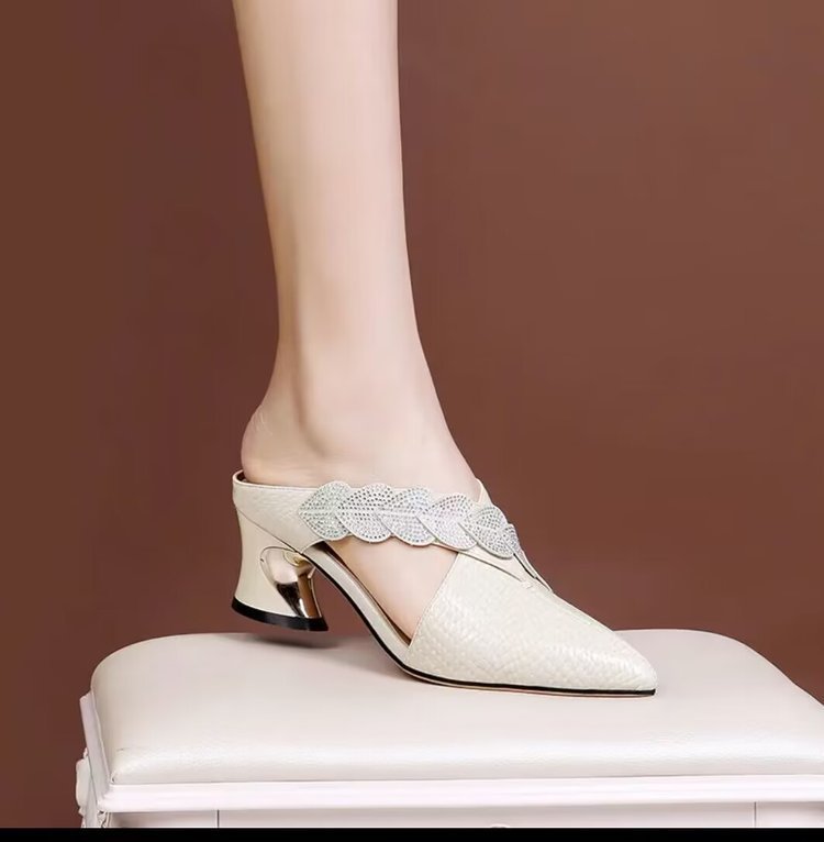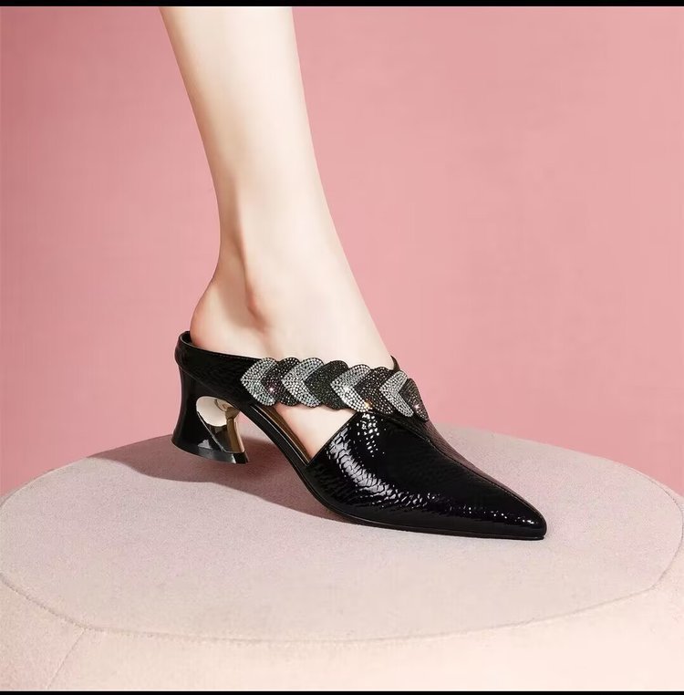 Кросс-бордерные летние корейские стильные остроносые толстые каблуки, модные повседневные сандалии для женщин большого размера с камнями