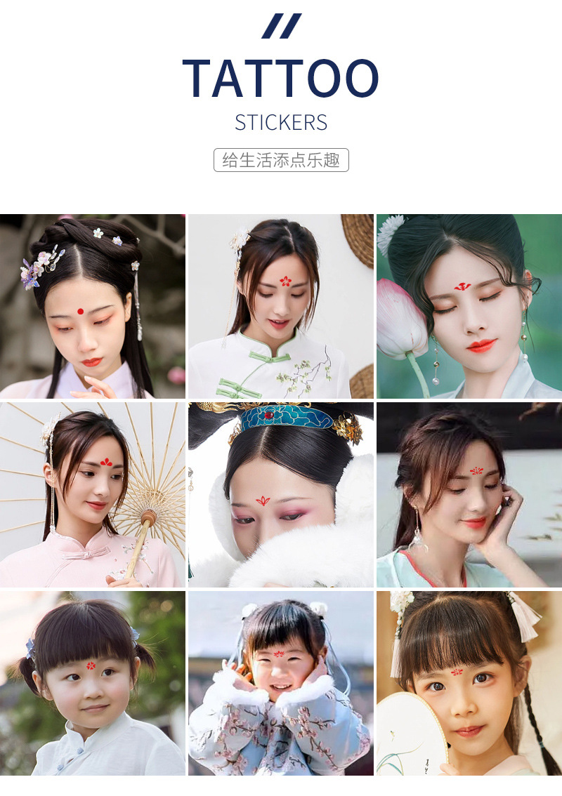 Наклейки на брови в национальном стиле для детей китайские костюмы цветочные наклейки на лоб одноразовые татуировки оптом