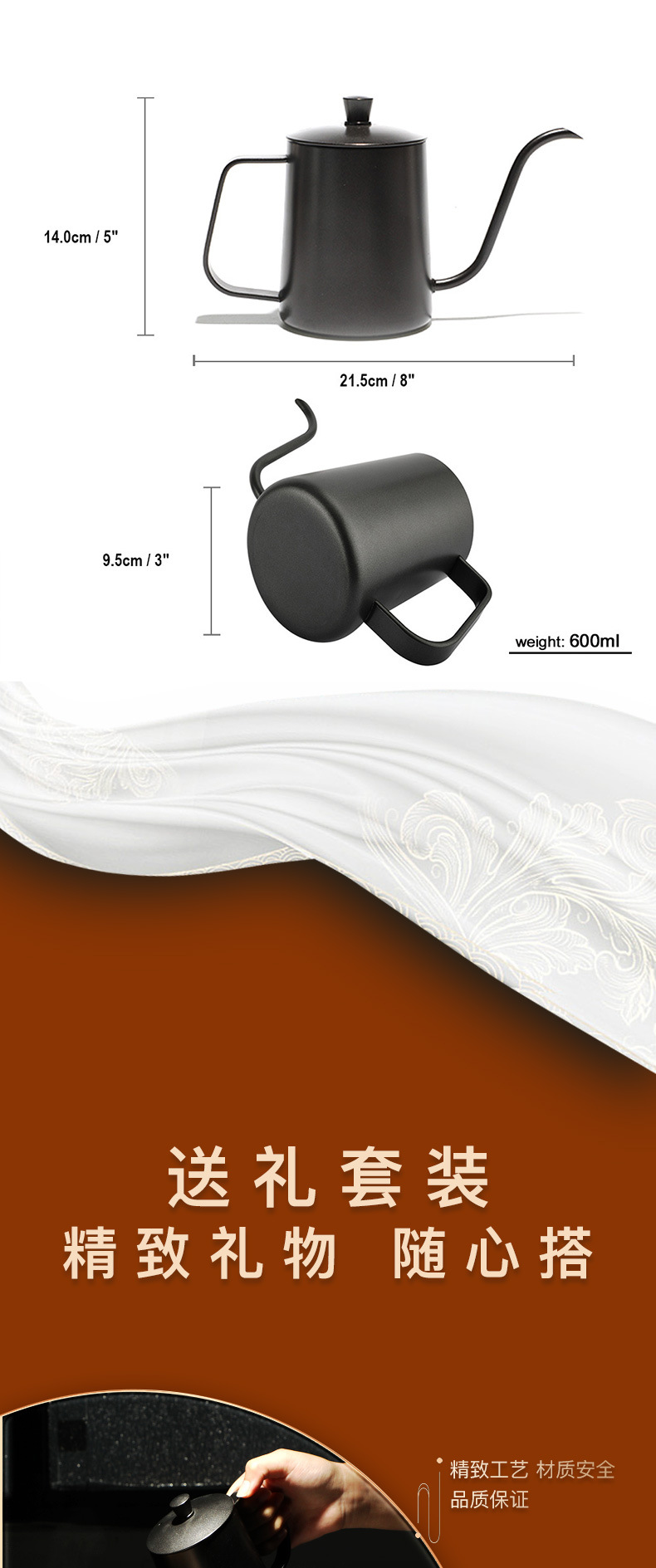 Кофейник с ручкой, фильтр для кофе, нержавеющая сталь, длинный носик, кухонные принадлежности для кофе, подарок