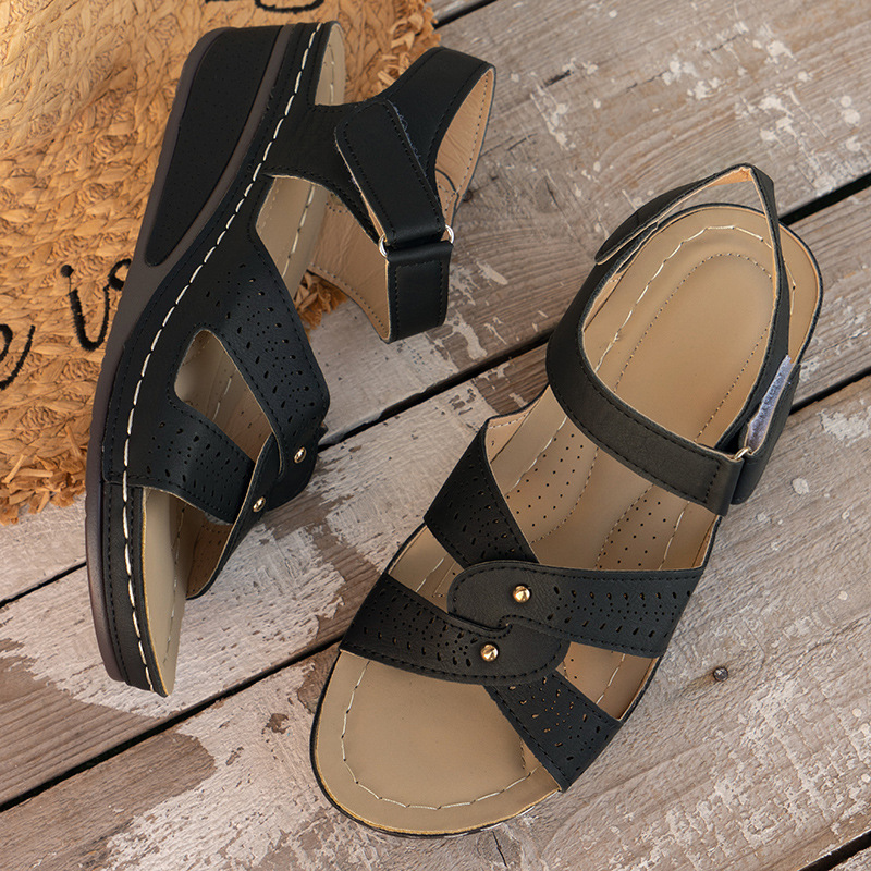 Сандалии для женщин с открытым носком, дышащие, большого размера, летние, с нескользящей подошвой и пряжкой