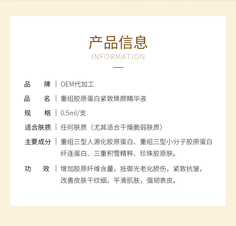 Реструктурированная коллагеновая эссенция для подтяжки и омоложения, OEM, увлажняющая и питающая основа для лица