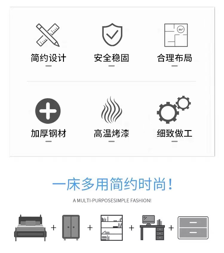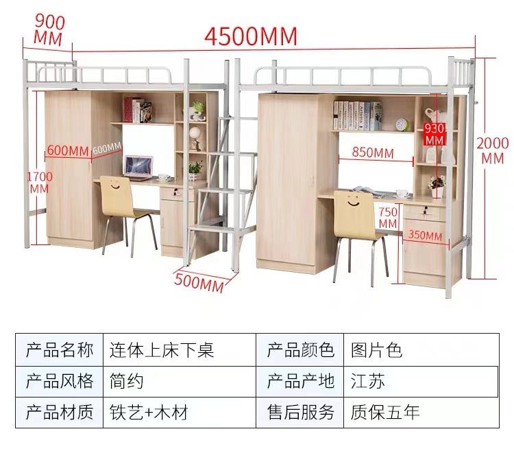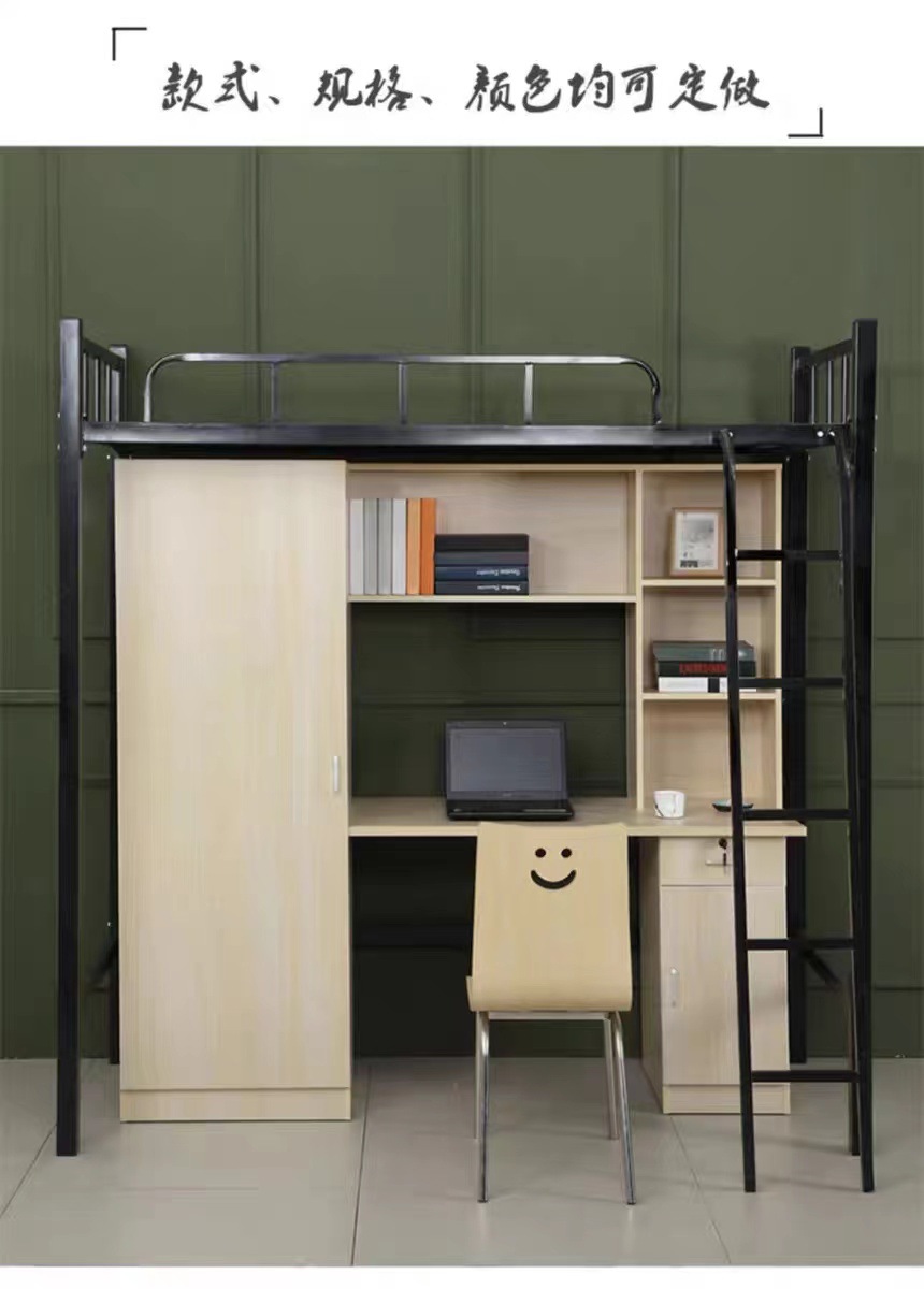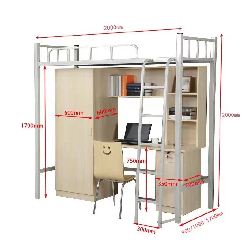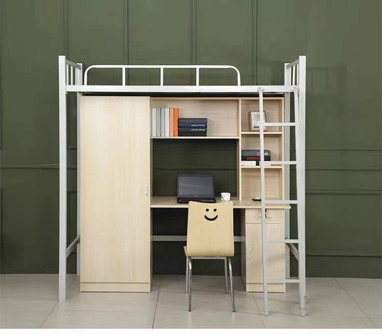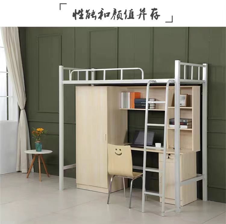 Двухъярусная кровать для студентов, высокая кровать, кованая кровать для школьного общежития, комбинированная кровать, интегрированная кровать с книжным шкафом для квартиры