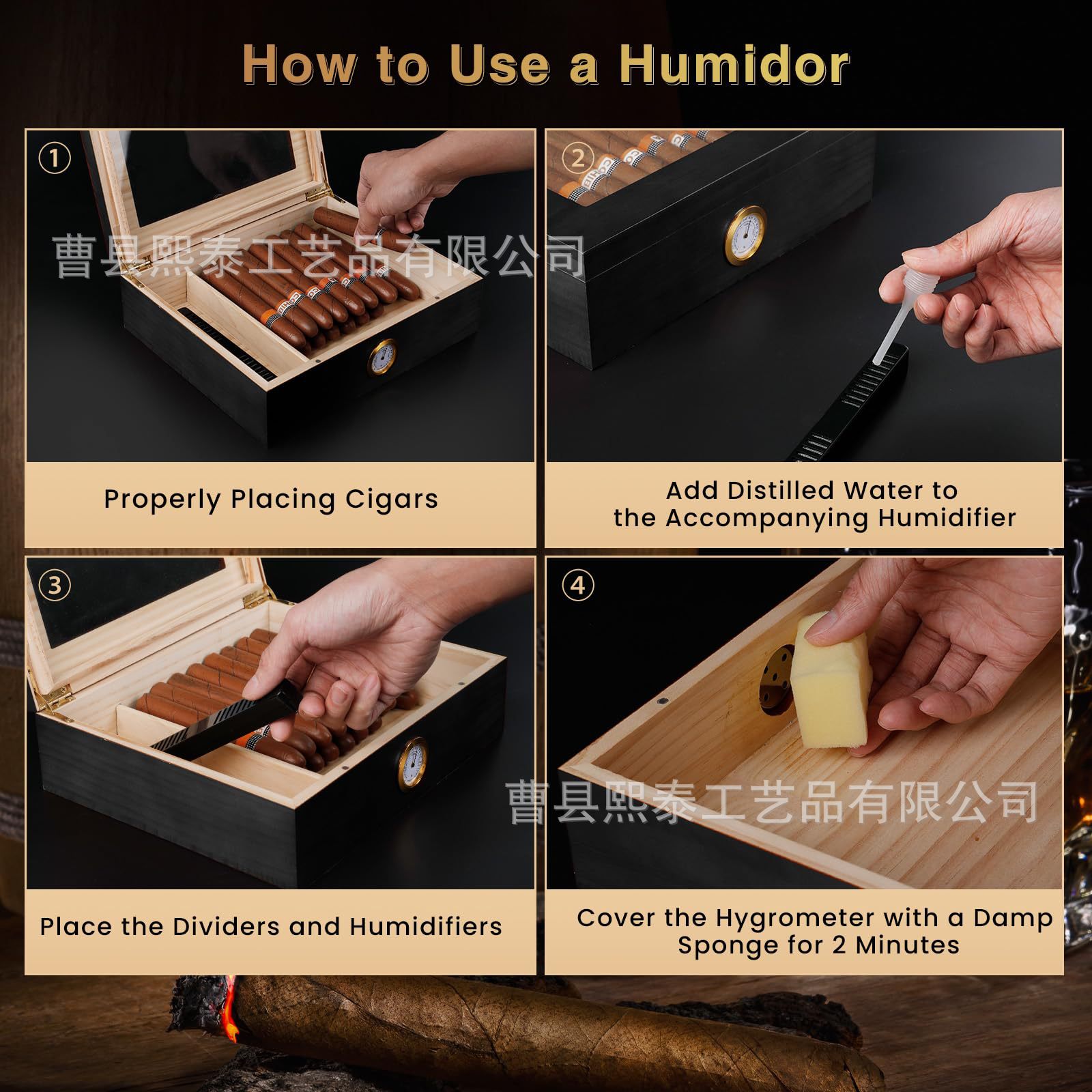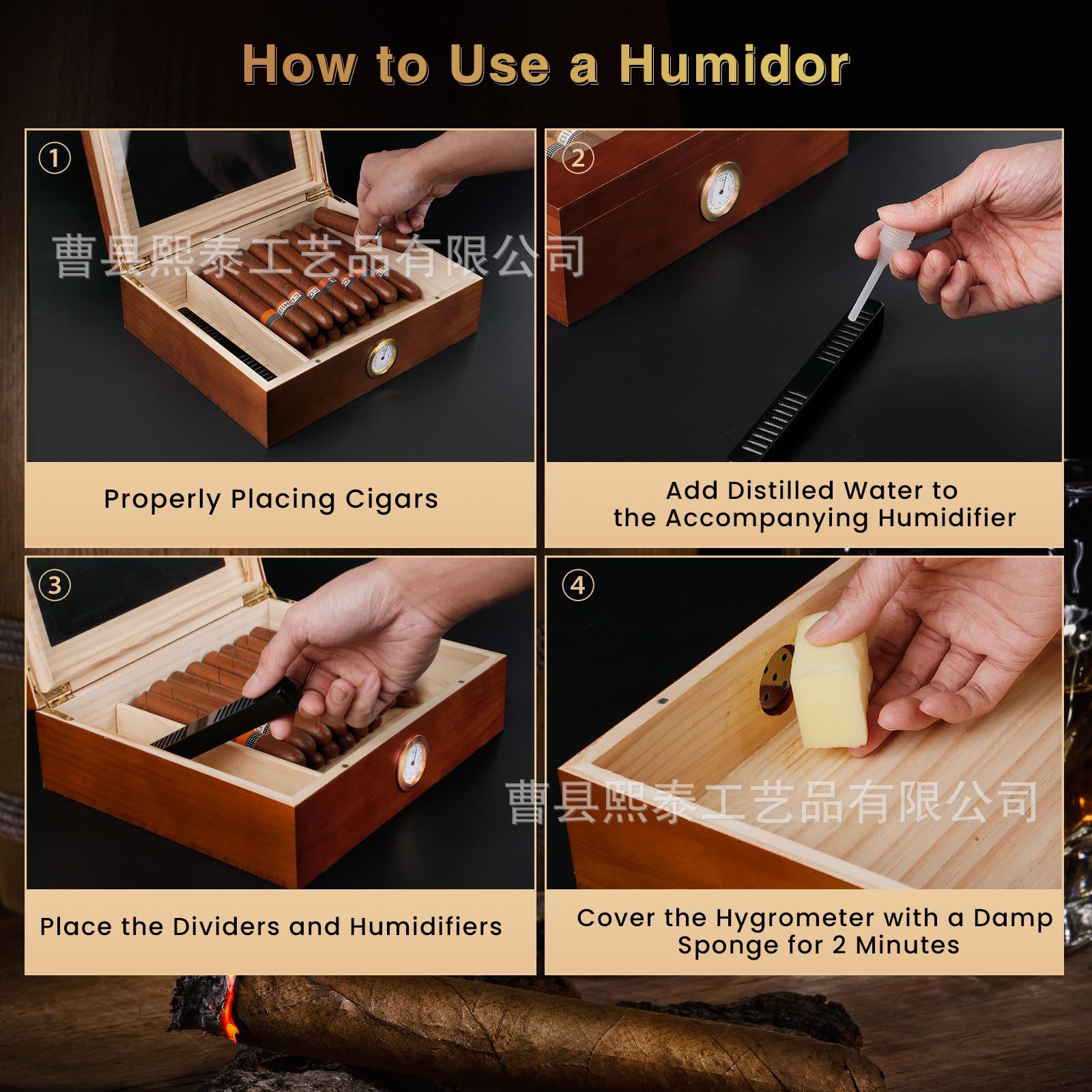 Оптовая продажа деревянного увлажнителя с прозрачной крышкой, коробка для хранения сигар из массива дерева