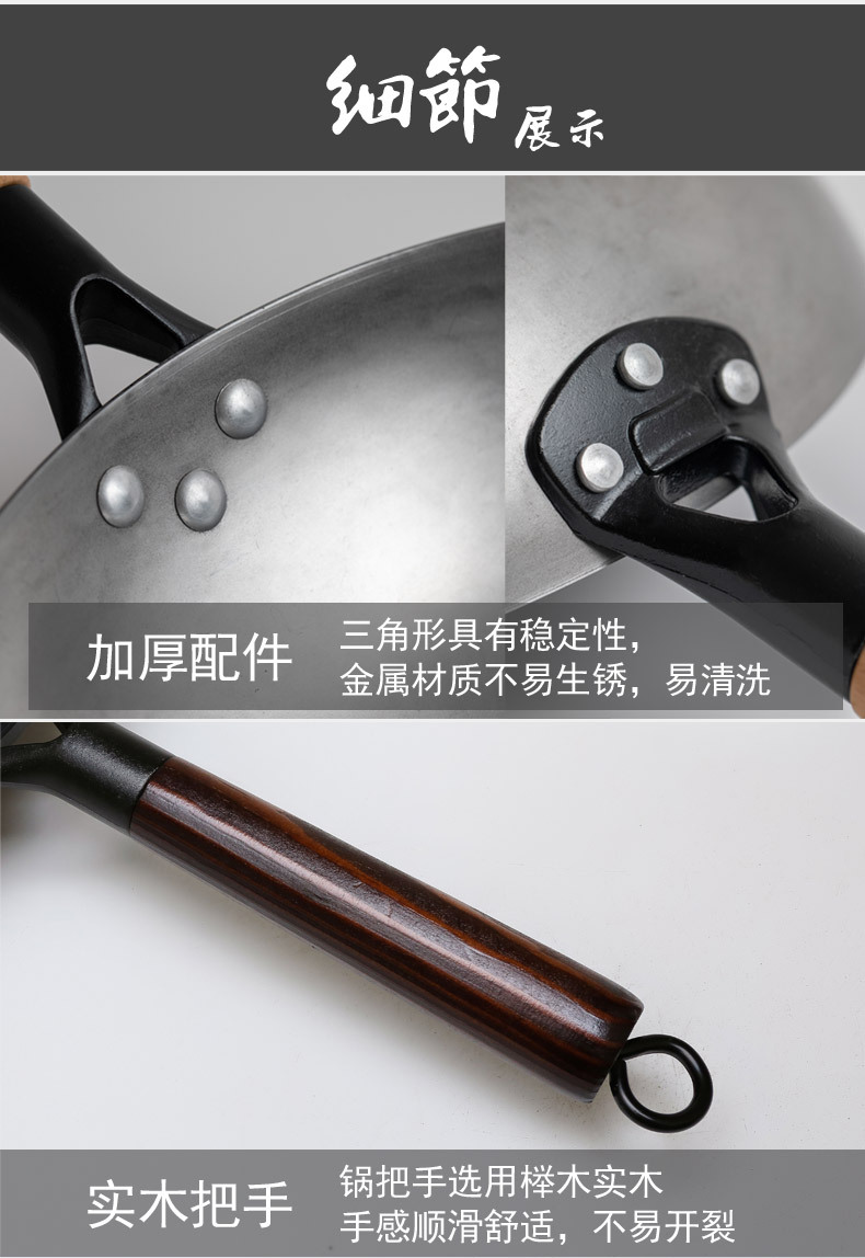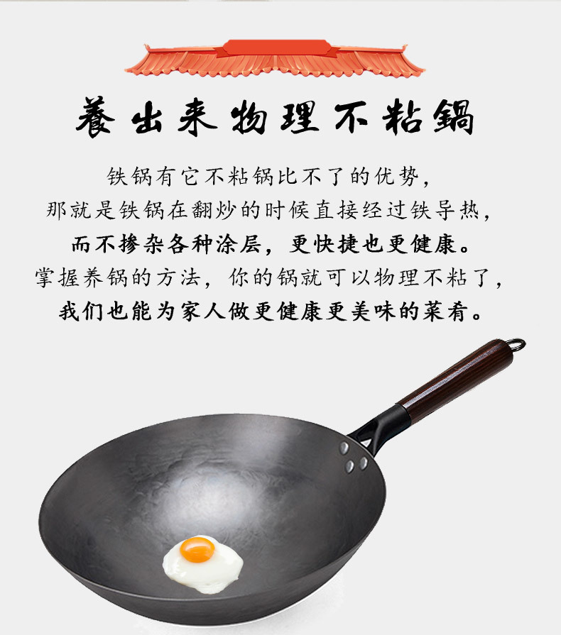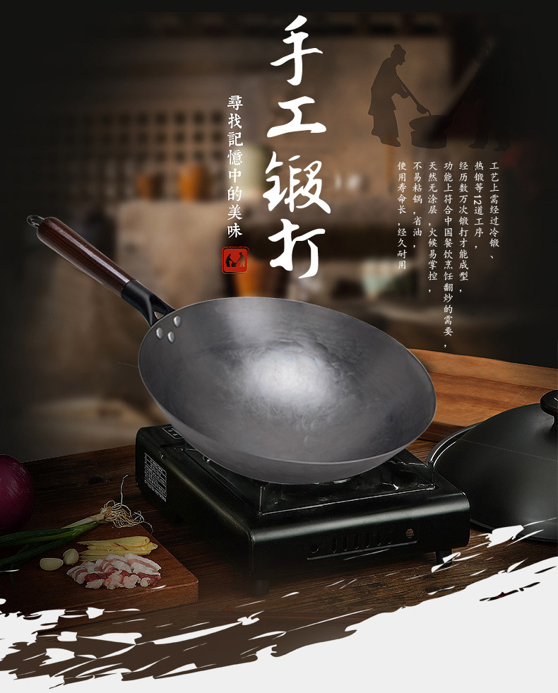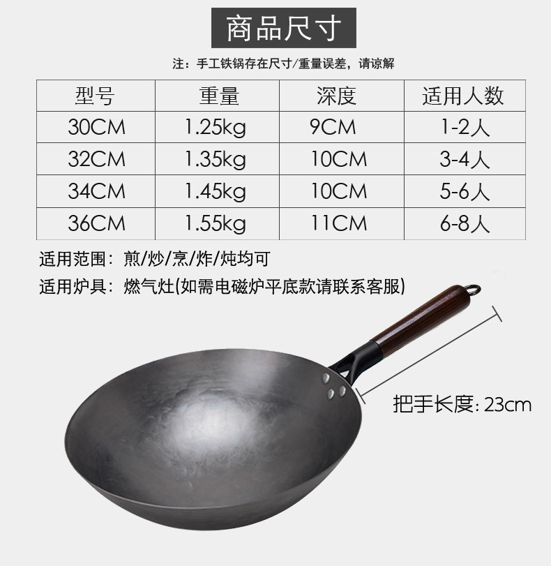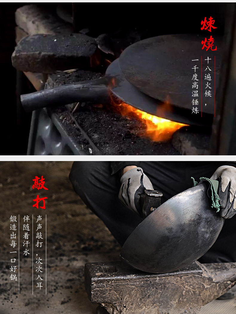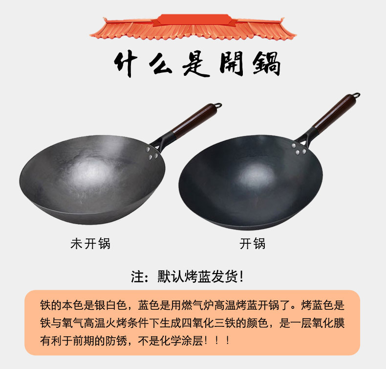 Ручная кованая сковорода с синей отделкой, традиционная, антипригарная, для домашнего использования, подходит для газовых плит