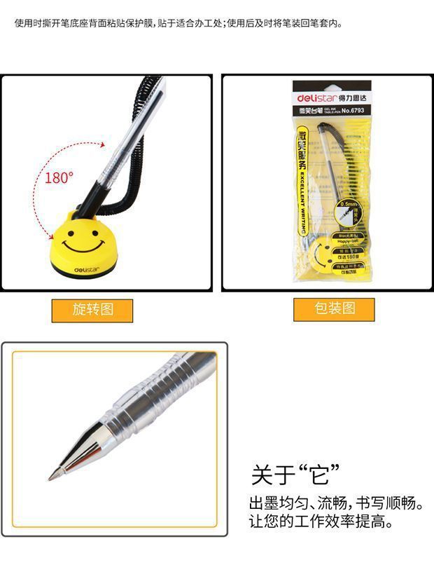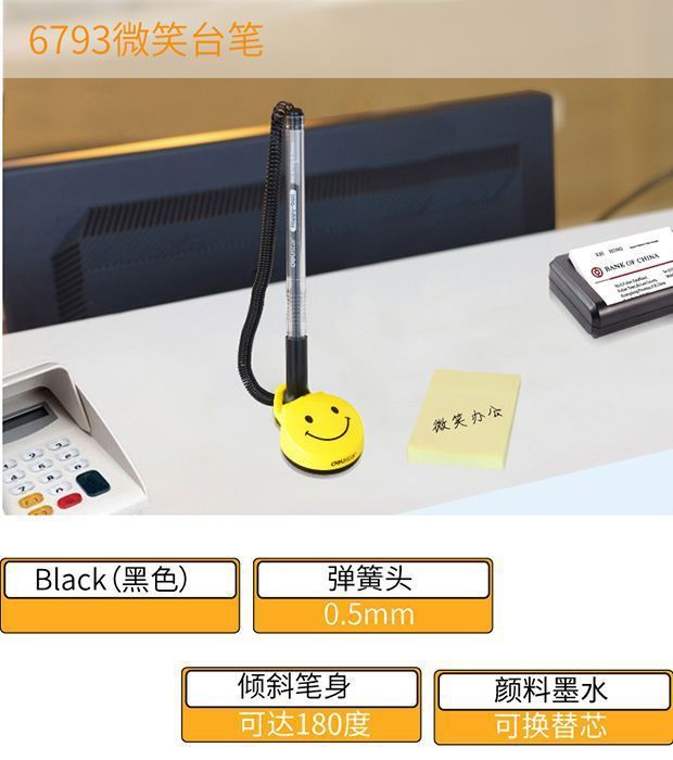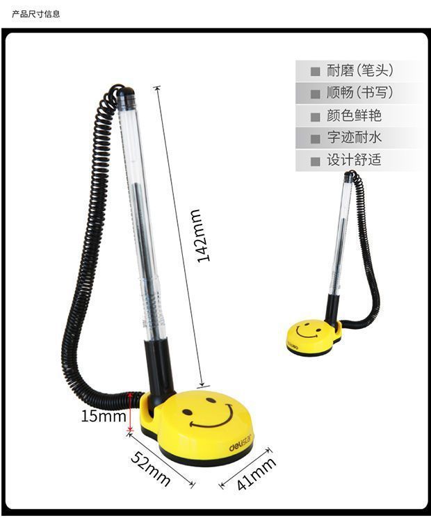 Ручка Deli с фиксированной пружиной и веревкой, антиворовская, с шариковой ручкой, черная