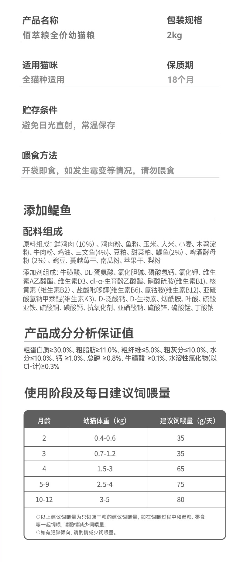 ![]() | 2kg* 5 packs | Gold label bai cui salmon + egg yolk kitten food | ¥140.0 / ≈ 1 691 ₽ | 3060 | 5925096244332 | |