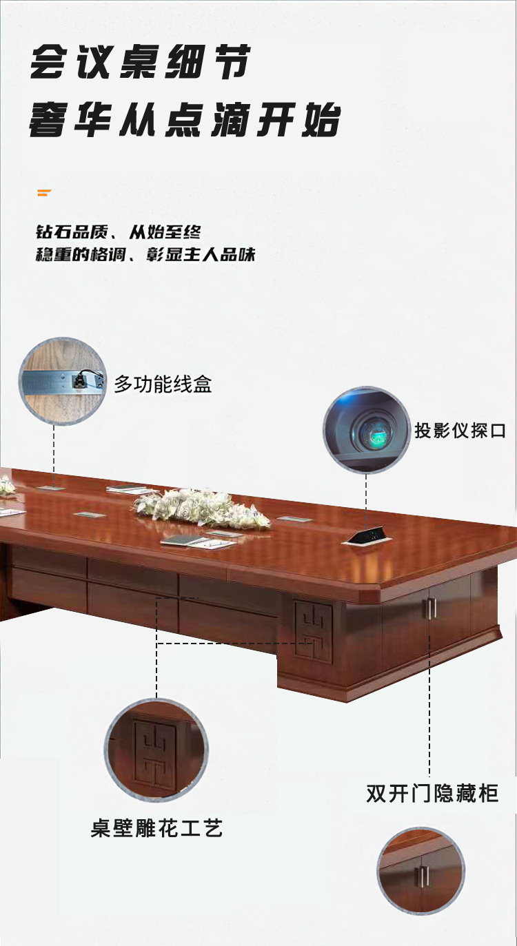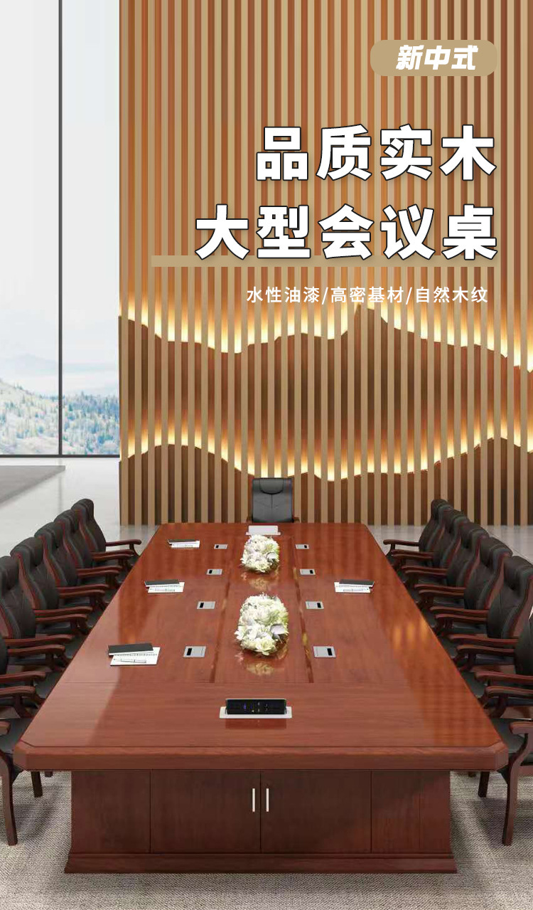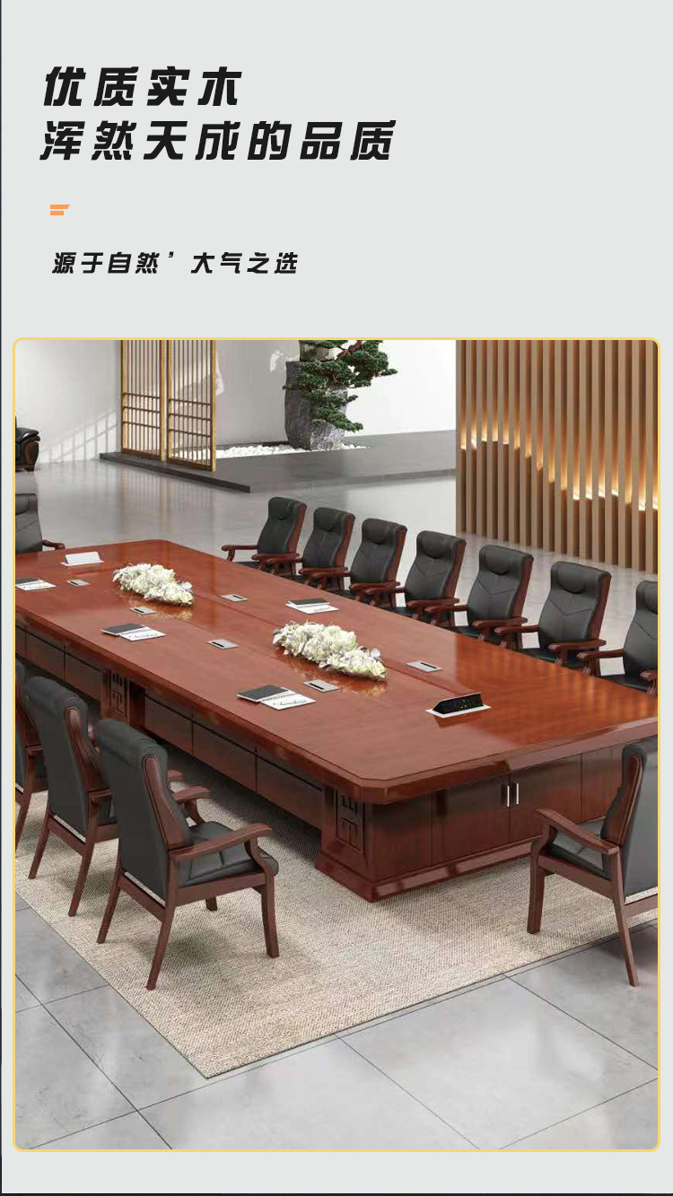 Китайский раскрашенный стол из массива дерева с кожаной отделкой, большой конференц-стол, длинный стол для коммерческих переговоров в конференц-зале
