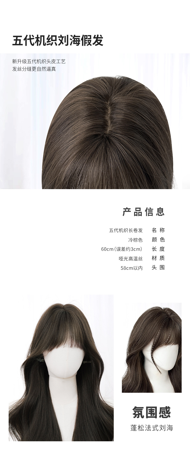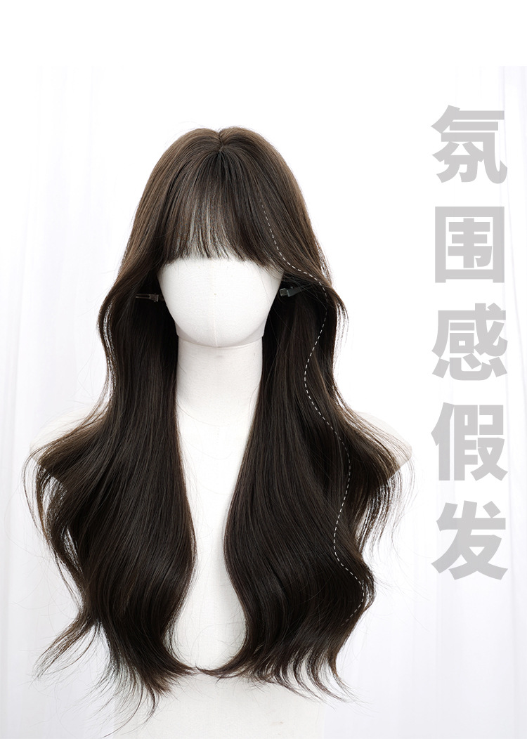 Осенний парик для женщин, оптовая продажа, кросс-бордерный, длинные кудрявые волосы, натуральные большие волны, челка, полный парик