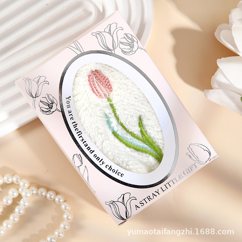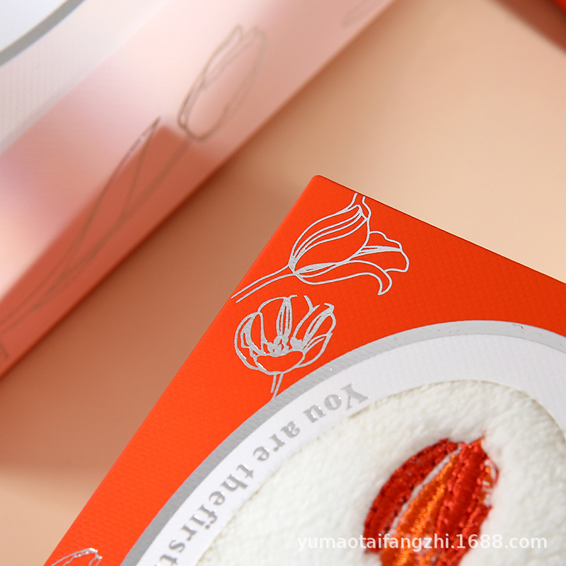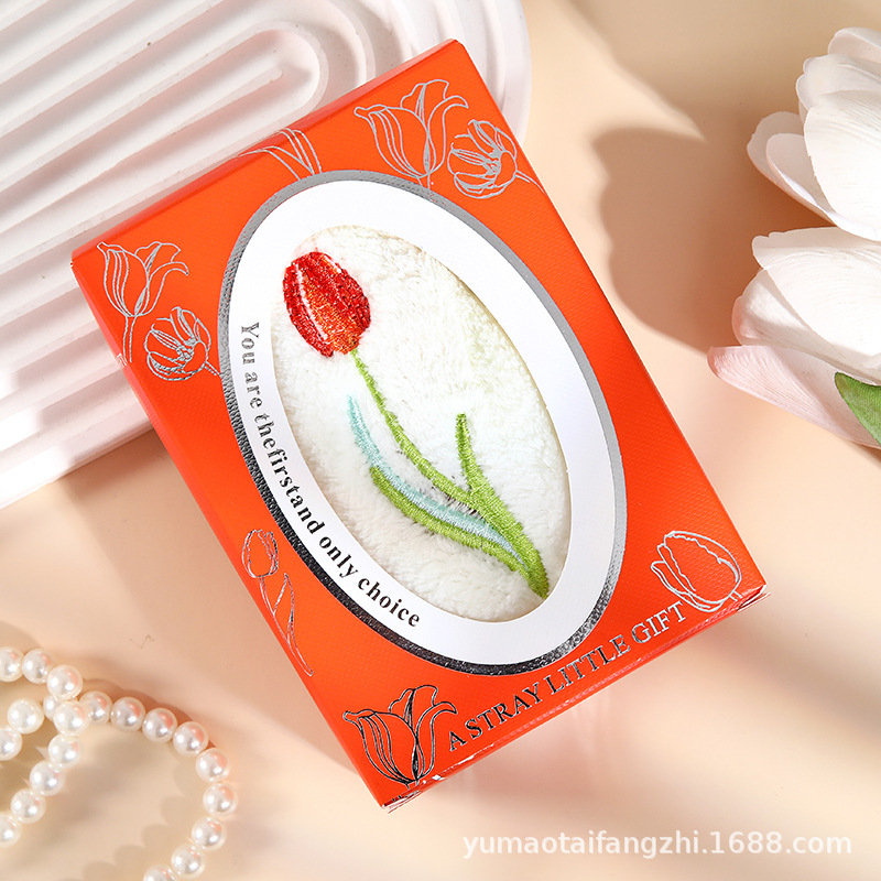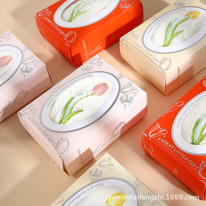 Коробка с полотенцем тюльпан, подарок компаньону, подарок для подружки невесты, вышитое полотенце для банкета, подарок на возврат