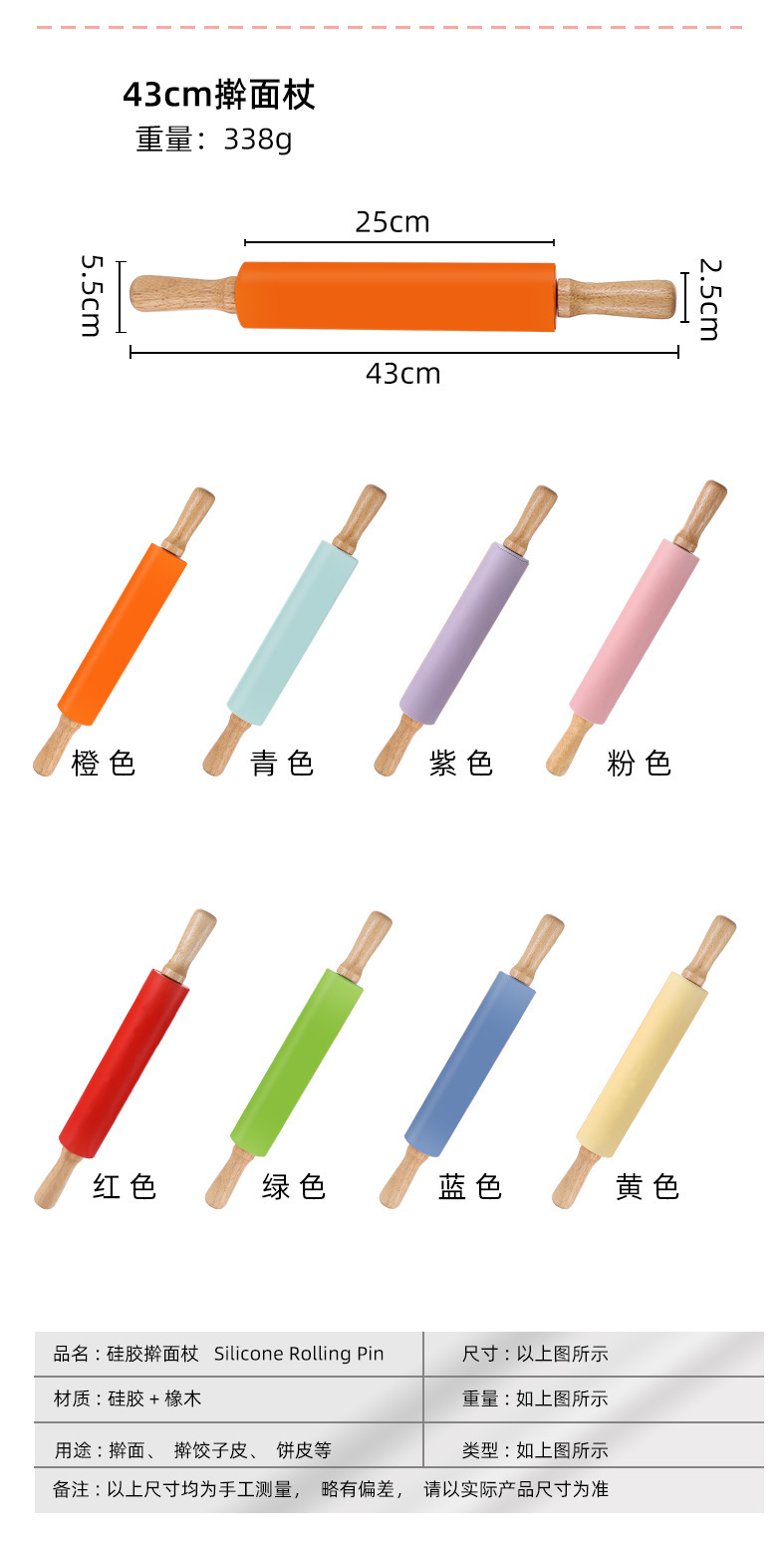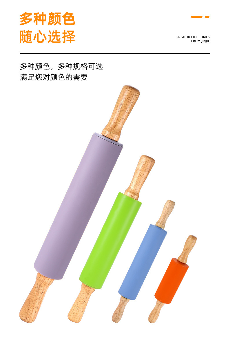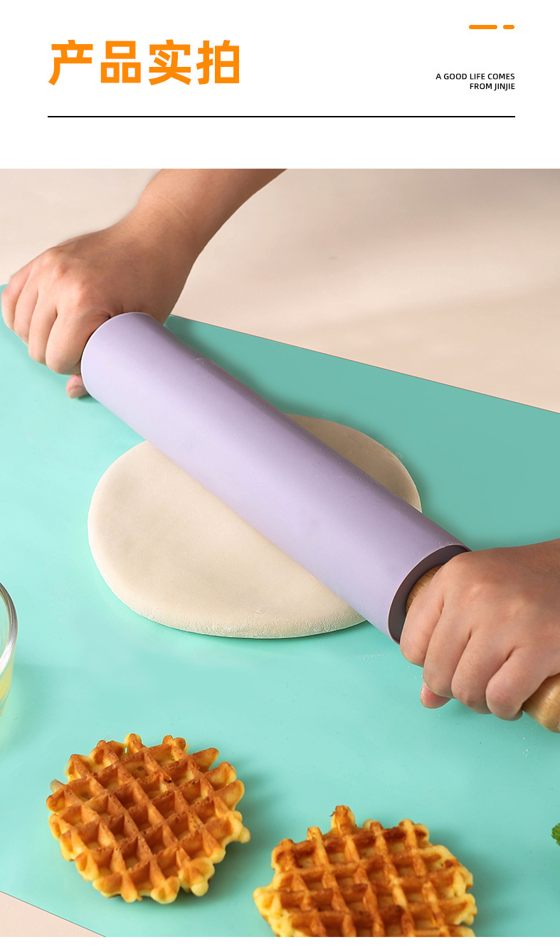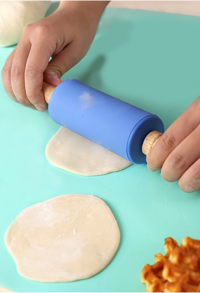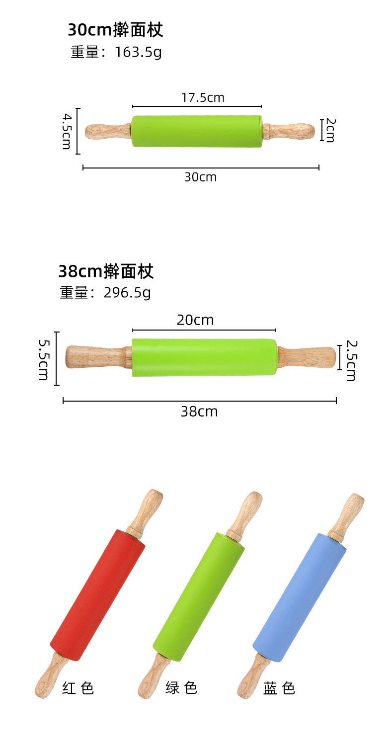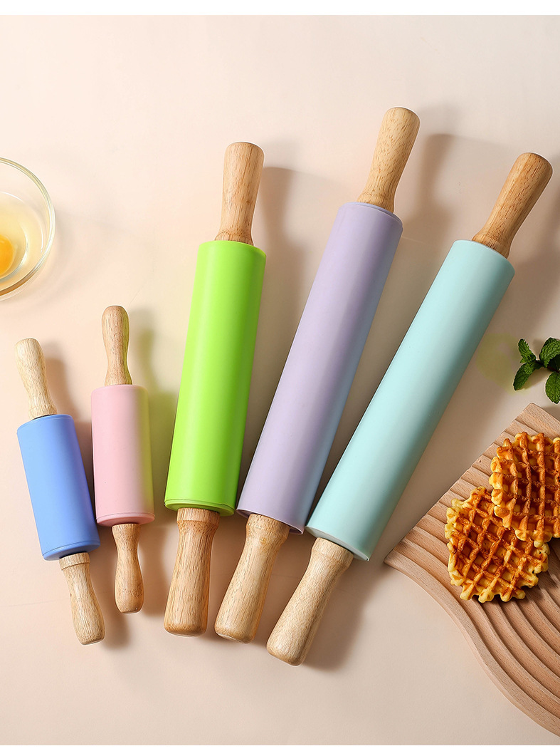 Оптовая продажа большой силиконовой скалки с деревянной ручкой