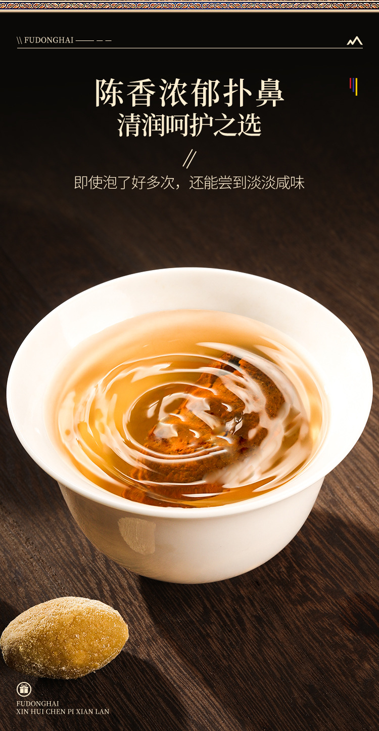 Сушеная мандариновая корка Fudonghai Chenpi (Сушеная мандариновая корка) Солнечные три сокровища 250г, соленая корка из Гуандуна Синьхуй, замоченная в воде, готова к доставке, оптовая продажа