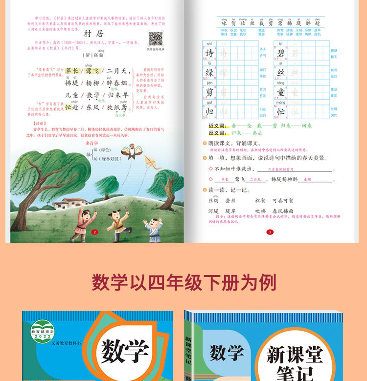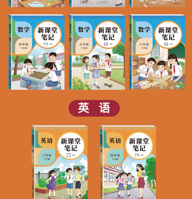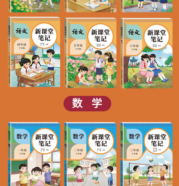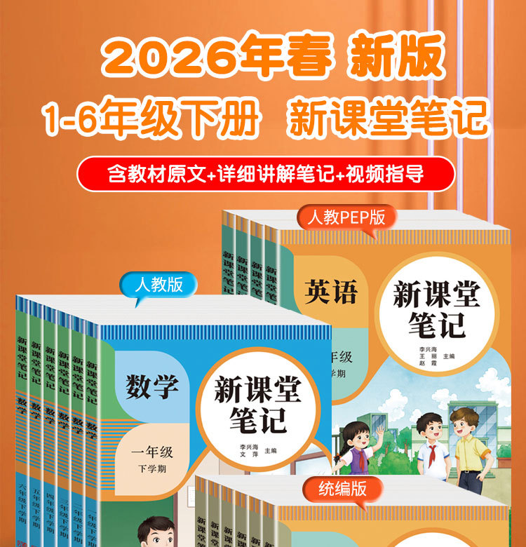 26 весенних новых классных заметок, Издательство Народного образования, Издательство образования Цзянсу, Издание Института иностранных языков Циндао, китайский, математика, английский, 1-6 классы, верхние и нижние тома