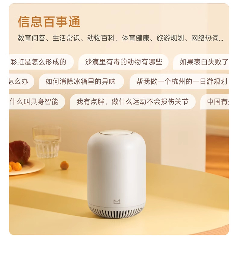 Умные функции Listening to music and books, smart home appliances, parent-child education, news and operas, checking weather and express delivery, encyclopedia knowledge