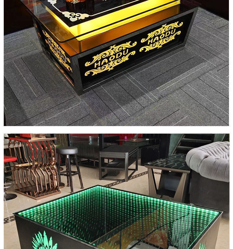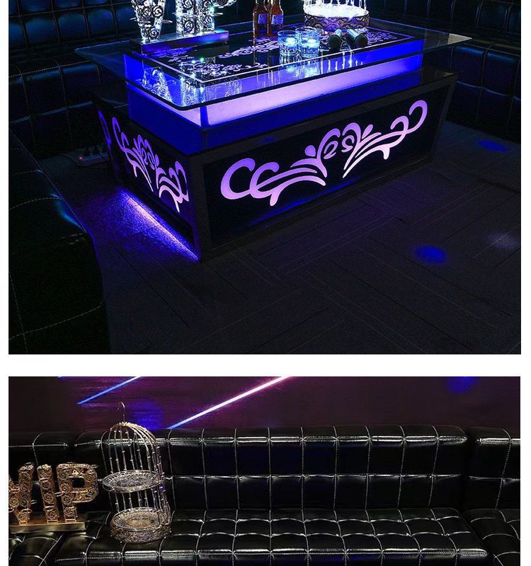 Кофейный столик KTV Bar для ночного клуба, коробка, нержавеющая сталь, стекло, светящийся, прозрачный бар