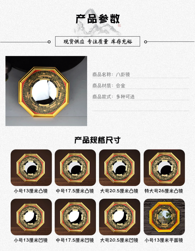 ![]() | Medium 17.5cm concave mirror hanging five emperors coins | ¥9.5 / ≈ 112 ₽ | 9998 | 5495559406920 | |